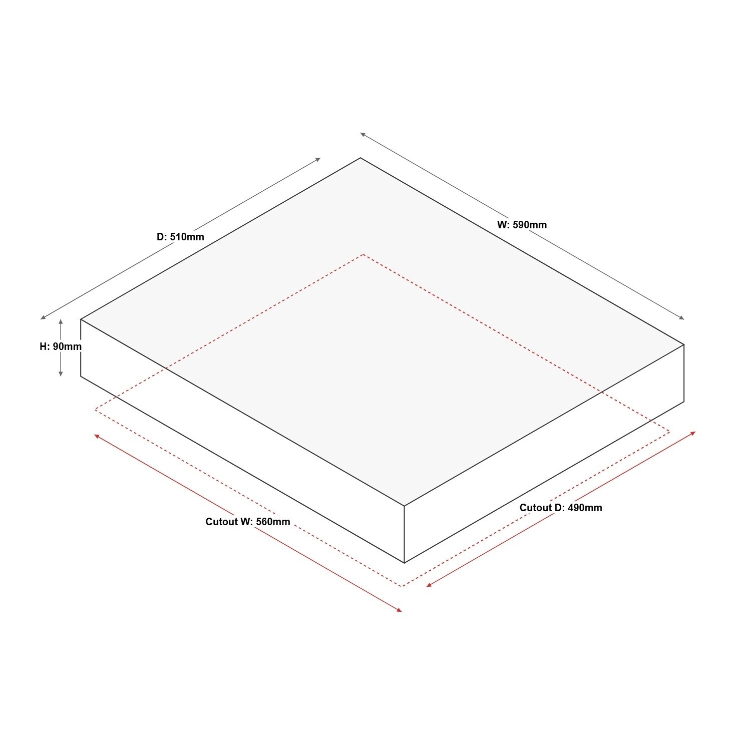 - Cut-out Size: W 560 x D 490mm