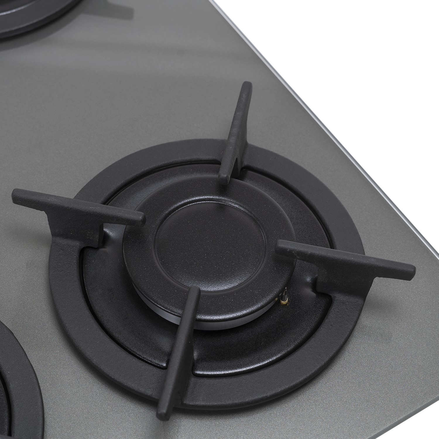 - Stylish polished lunar grey glass gas hob