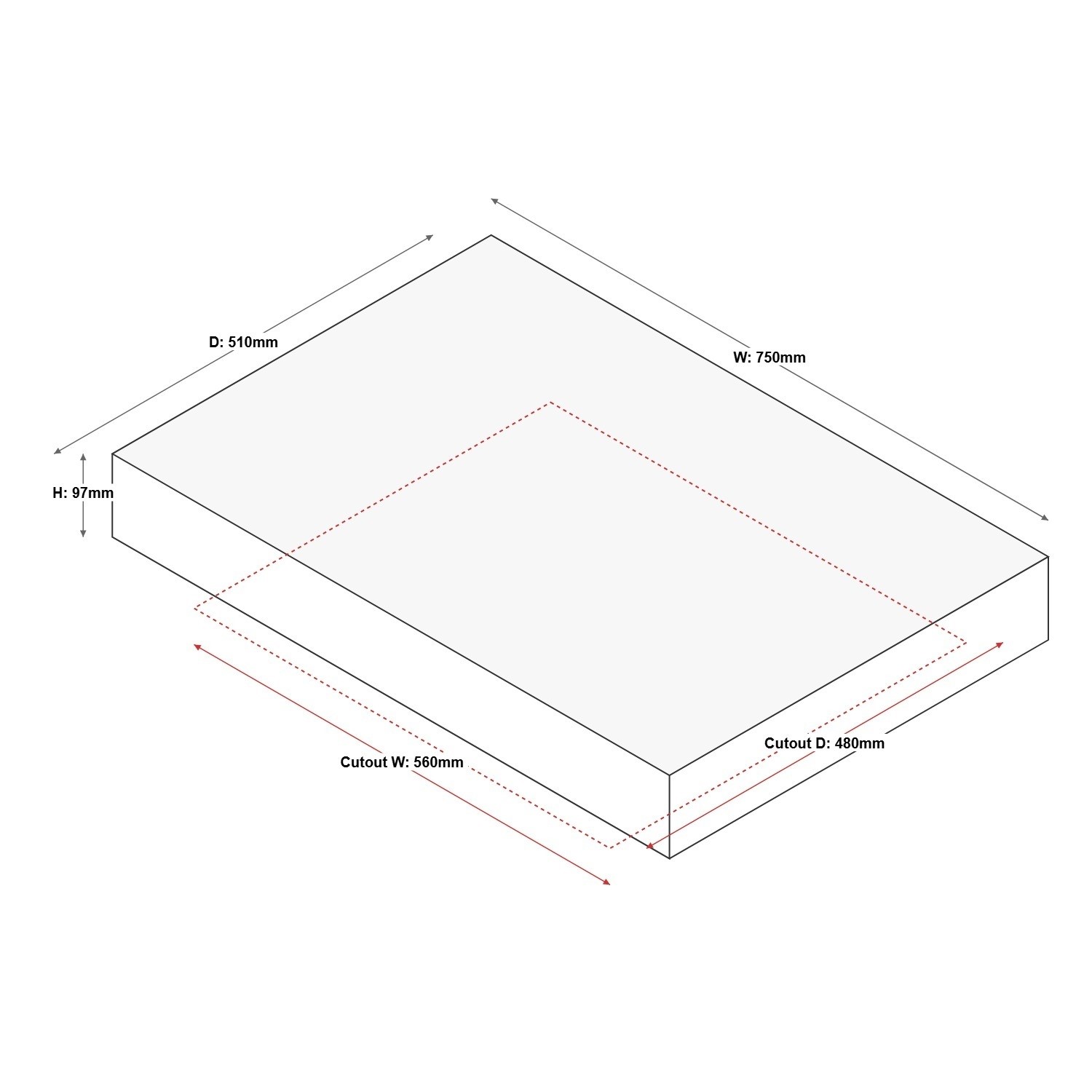 - Cut-out size: W 56 x D 48cm