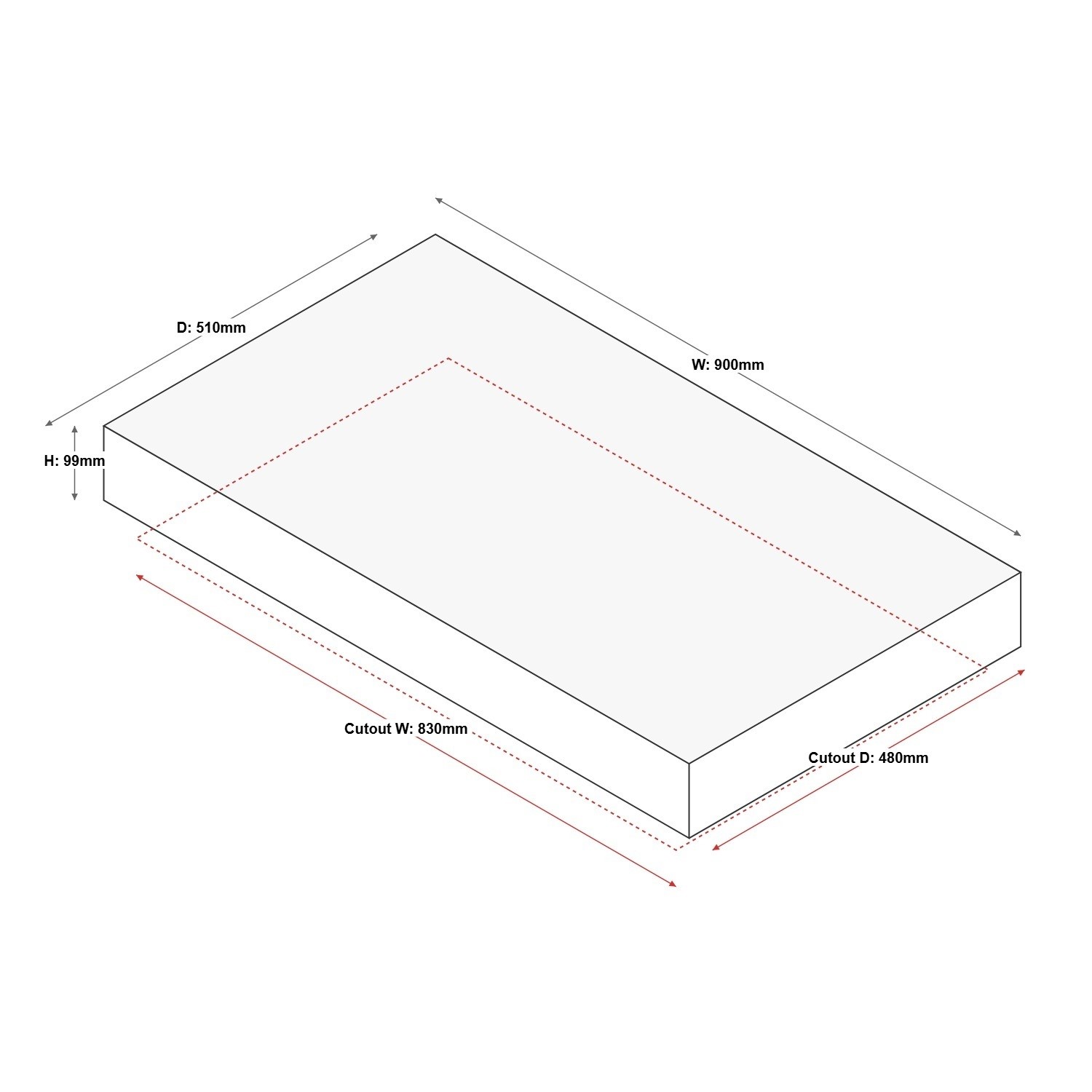 - Cut-out Size: W 830 x D 480mm