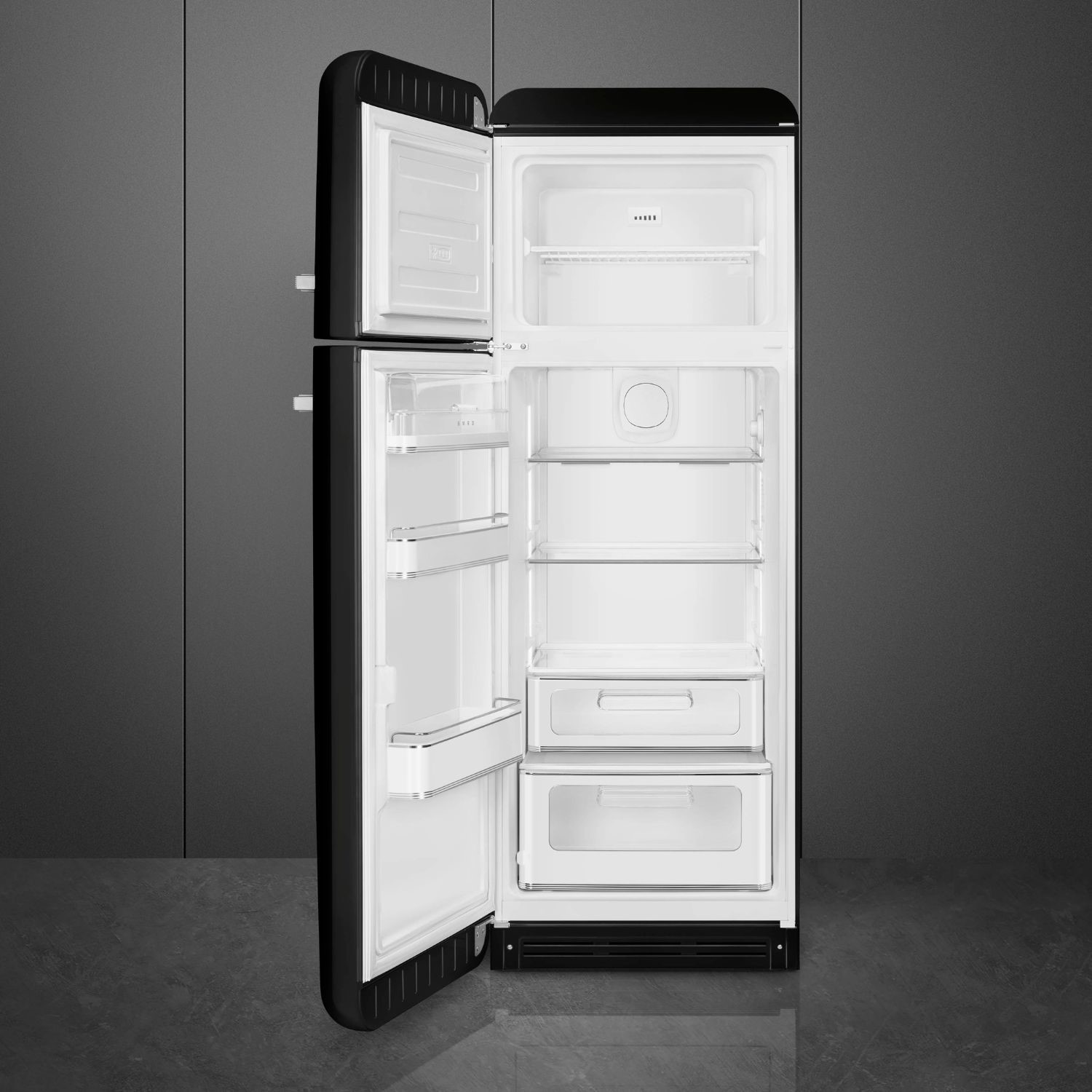 Smeg 294 Litre Fifties Style Left Hand Hinge 70/30 Fridge Freezer - Black