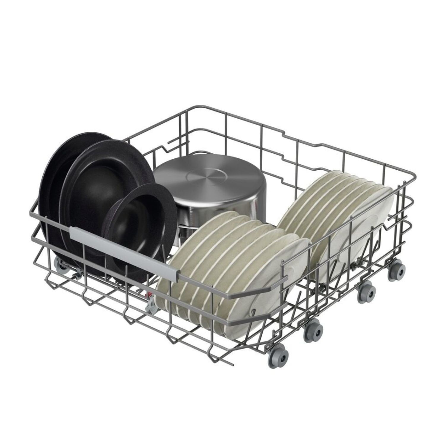 Redesigned, EasyFlex Plus baskets glide smoothly and have three foldable rows to make room for hard-to-fit items. Rubber grips and anti-slip spikes hold stemware in place and prevent collisions. Cutlery drawer even fits whisks and ladles.