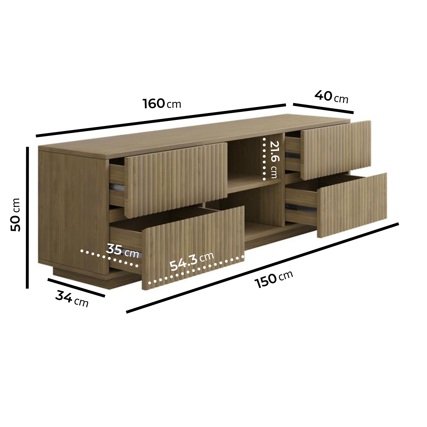 - Dimensions: H50 x W160 x D40 cm