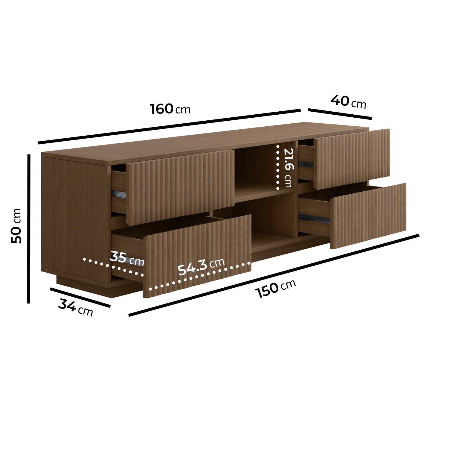 - Dimensions: H50 x W160 x D40 cm