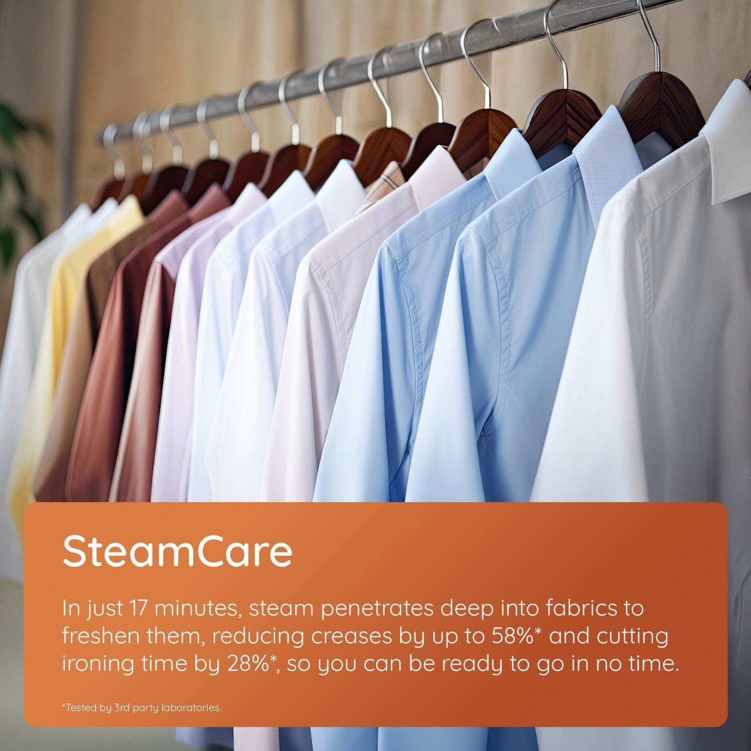 Freshen clothes quickly without a full wash. The Steam Care cycle gets clothes fresh again in just 17 minutes. It also reduces creases, meaning less ironing.