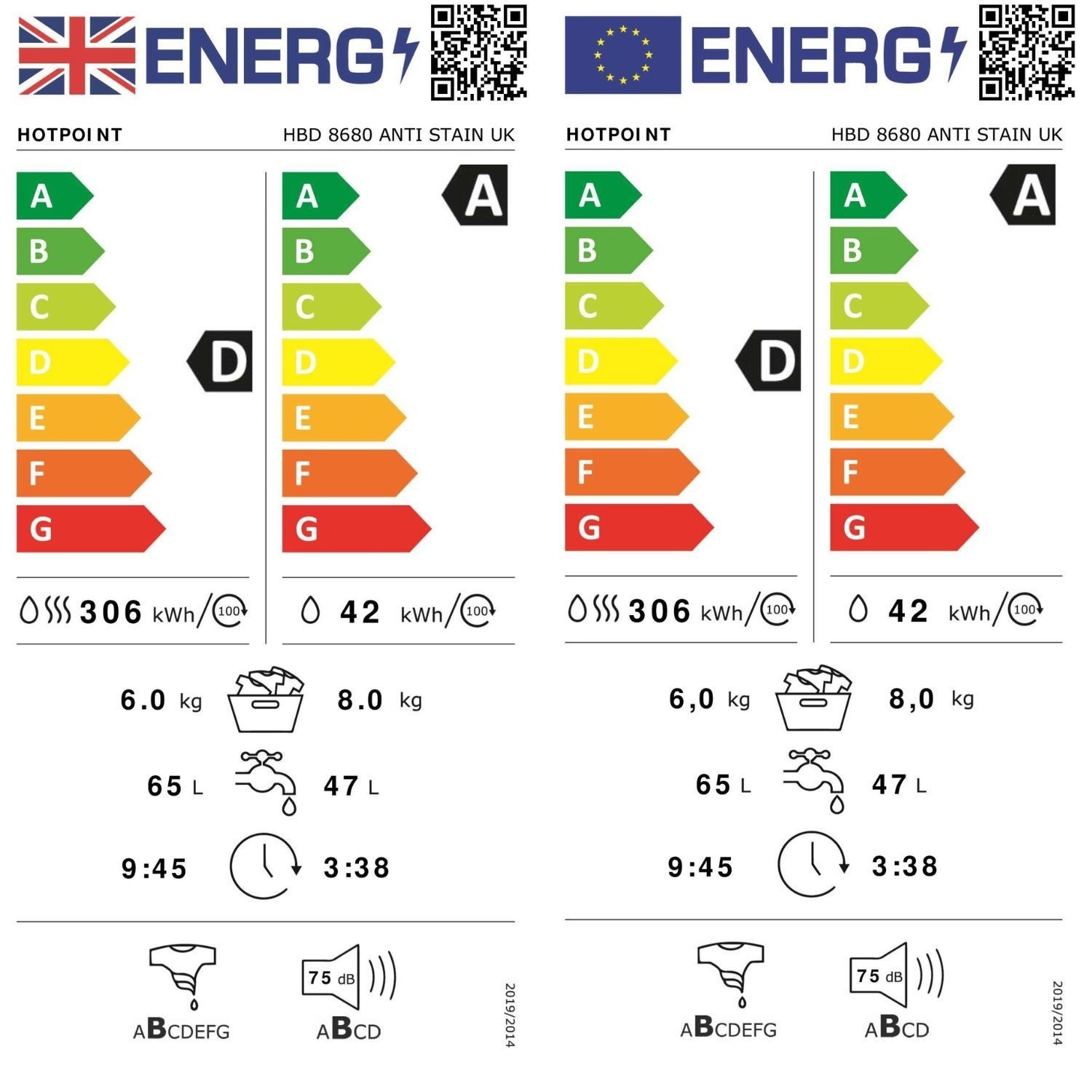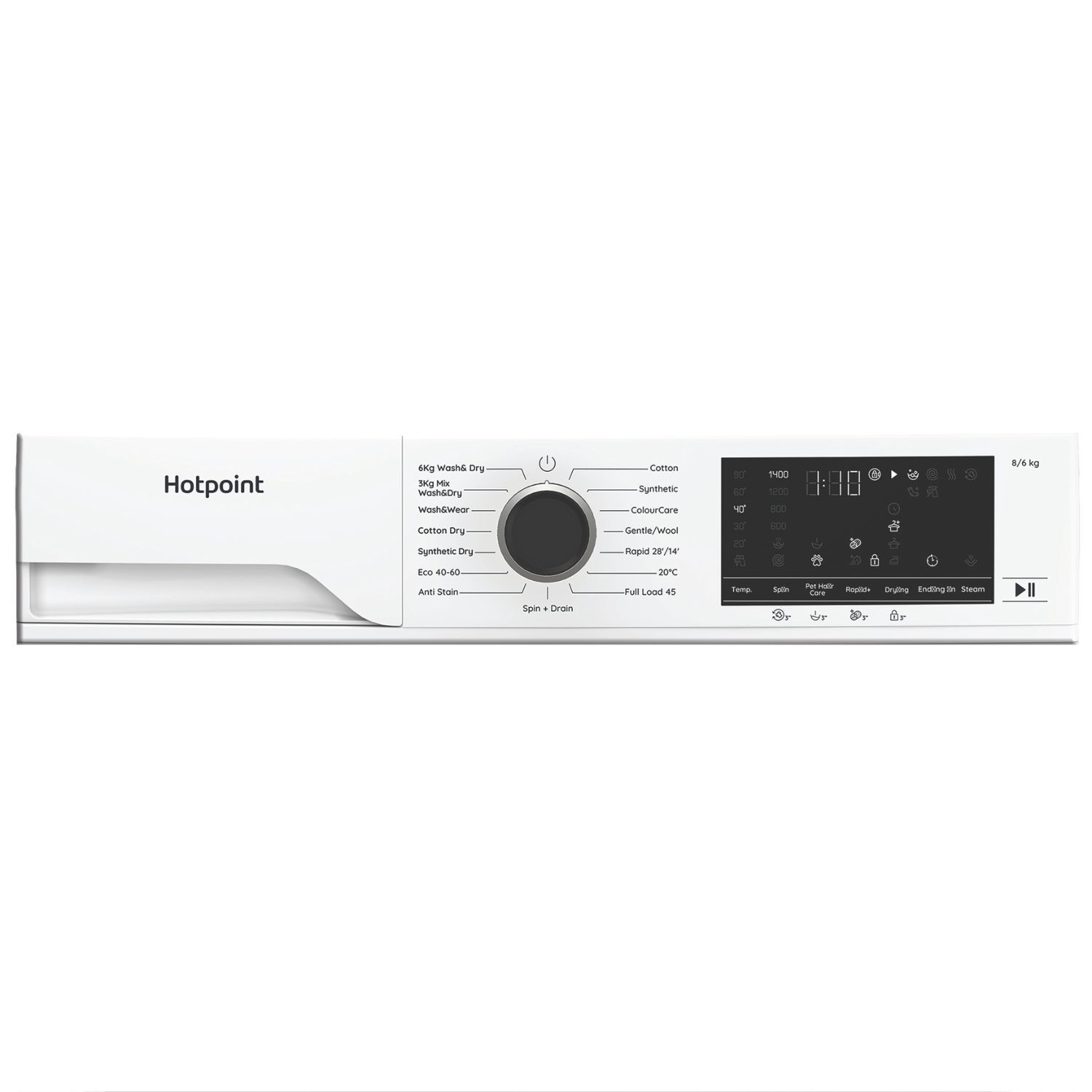 The Hotpoint HBD 8680 AntiStain UK is a freestanding, front-load washer dryer designed to make laundry more convenient by combining wash and dry functions in a single appliance. Featuring AntiStain performance, it helps improve stain removal for cleaner results with everyday garments. Finished in a classic white colour, this model fits seamlessly into laundry rooms or utility spaces while delivering practical performance. Built for everyday use, it offers the reliable quality Hotpoint is known for.
