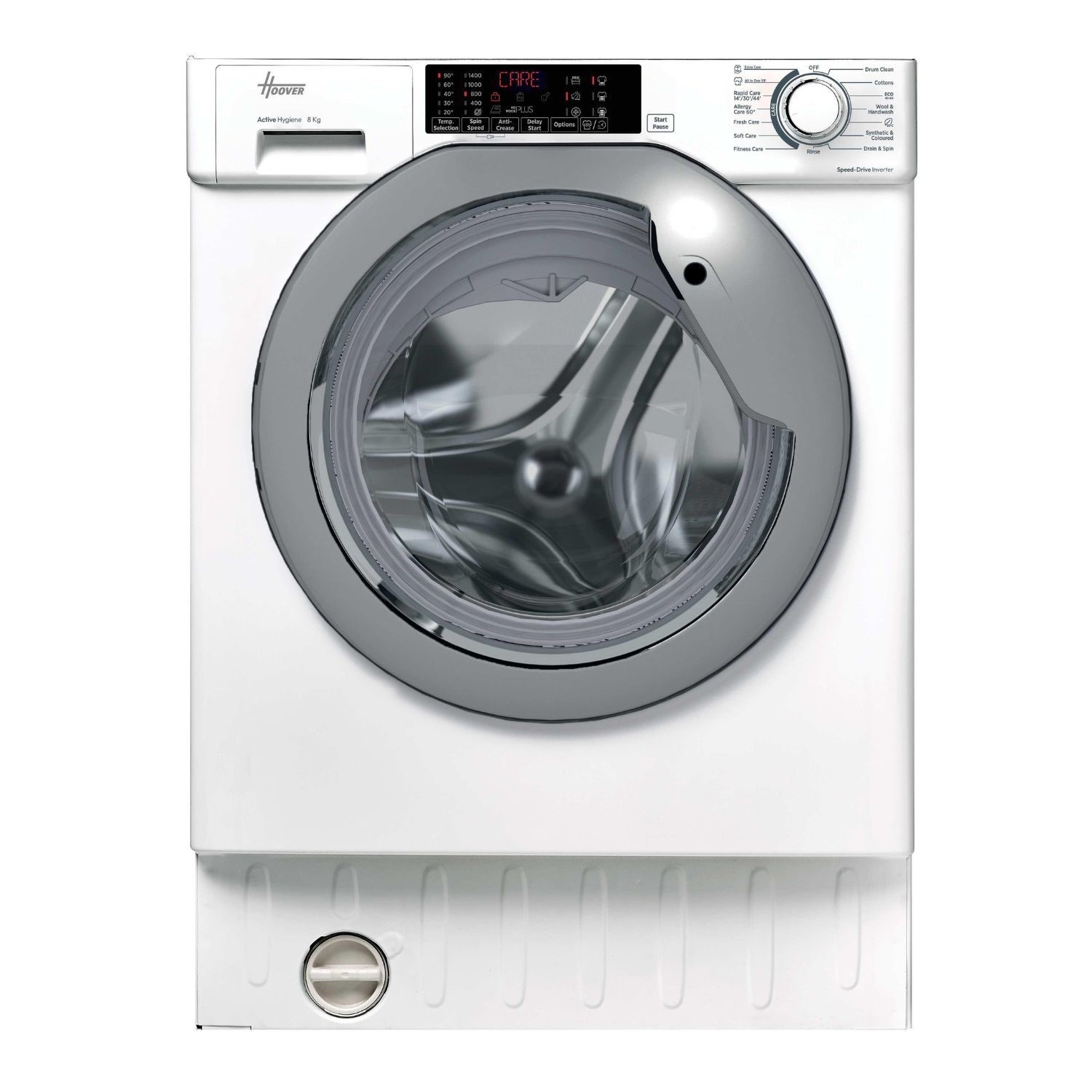 Looking for a washing machine that fits seamlessly into your home and busy life? The Hoover H-Wash 300 Pro integrated washing machine is a smart choice. Its large 8kg drum capacity means you can wash more clothes in one go, cutting down on laundry days and giving you more time back. Need a quick clean? The All In One 59' and Rapid Care cycles get clothes fresh fast, perfect for those last-minute needs. Plus, with the Anti-Crease option, you'll spend less time ironing, making your life even easier.
