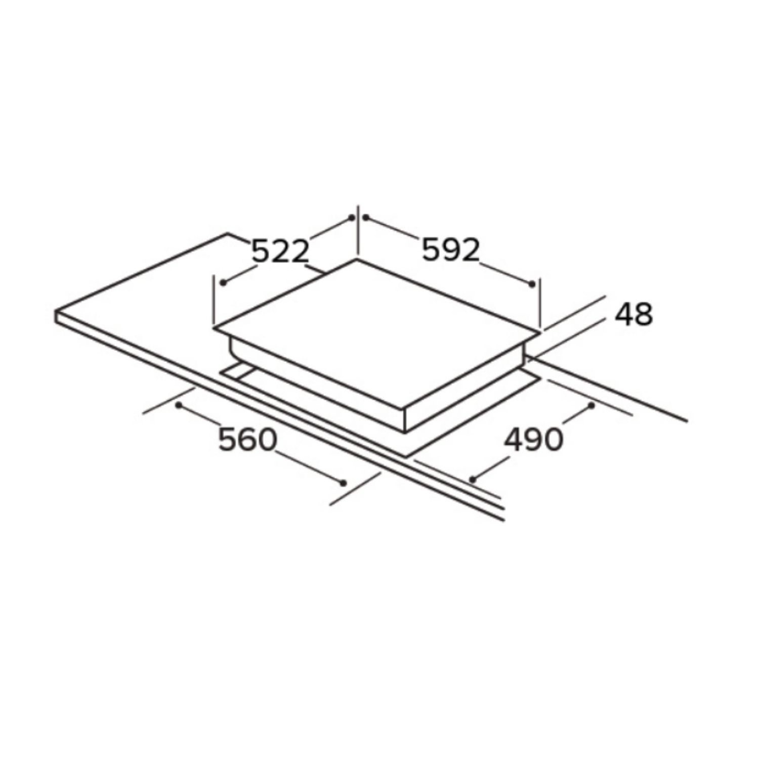 - Hob dimensions: H6.5 x W57.6 x D51.8 cm