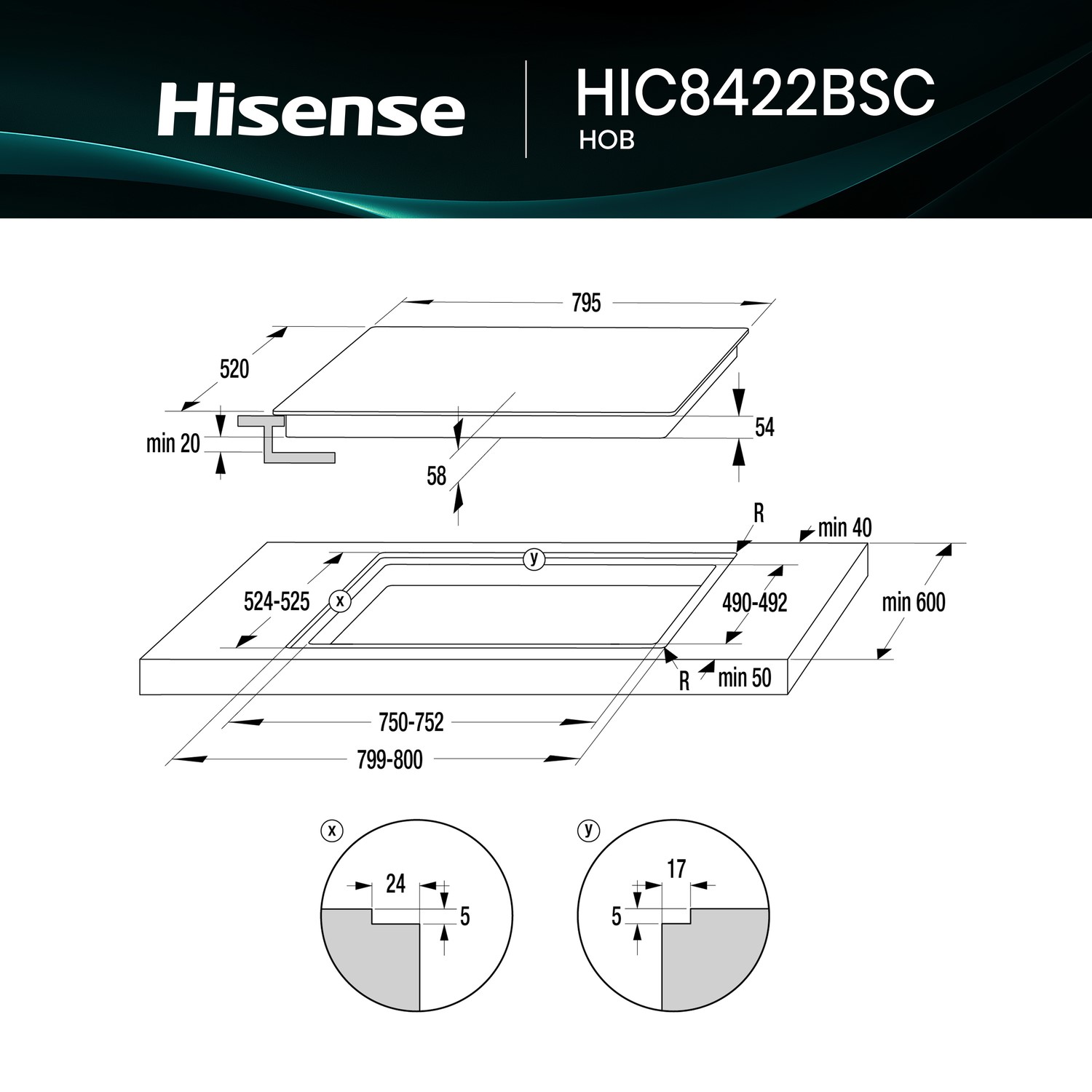 - Dimensions (mm): H54 x W795 x D520