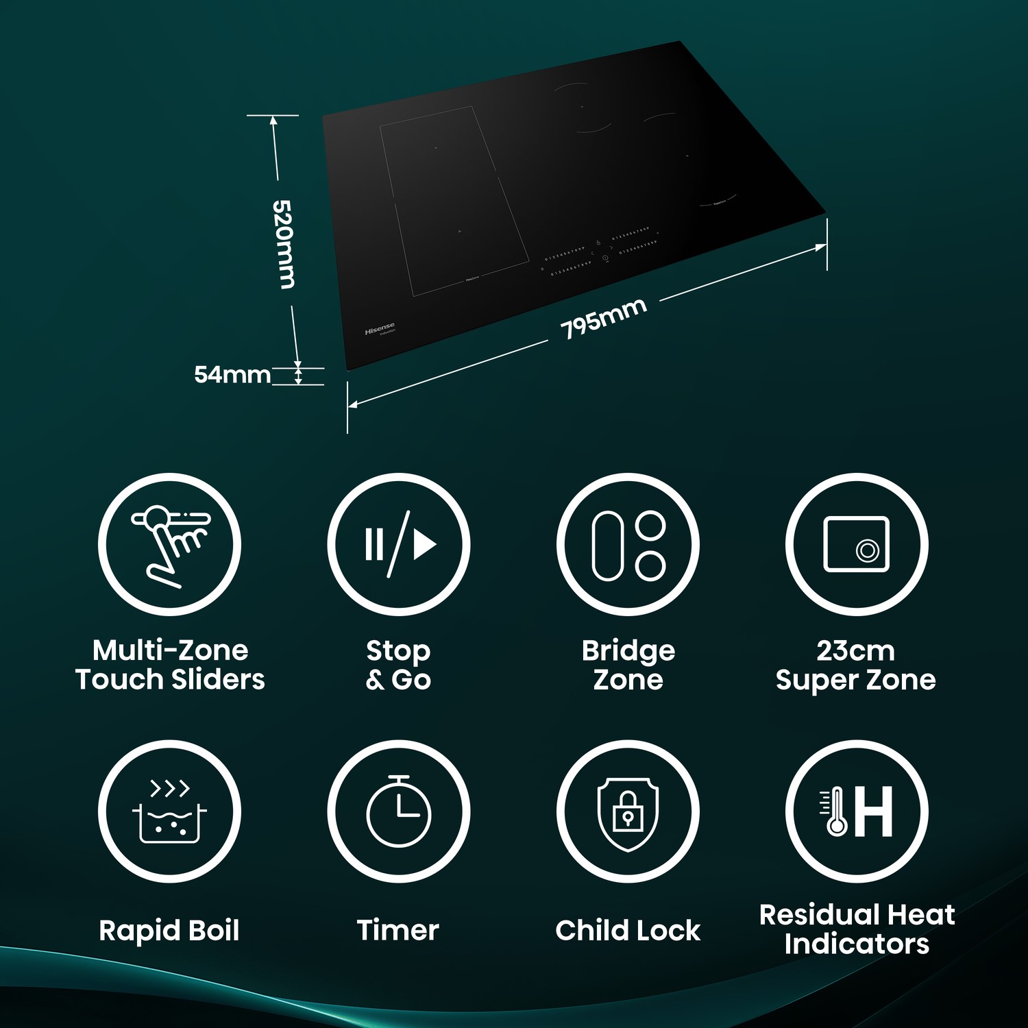 The latest innovation from Hisense hobs, the 23cm Super Zone is perfectly positioned at the front of the hob for larger pots and pans. Efficiently keeping the whole pan warm, from the centre to the edges, you'll be guaranteed even cooking results, everytime.