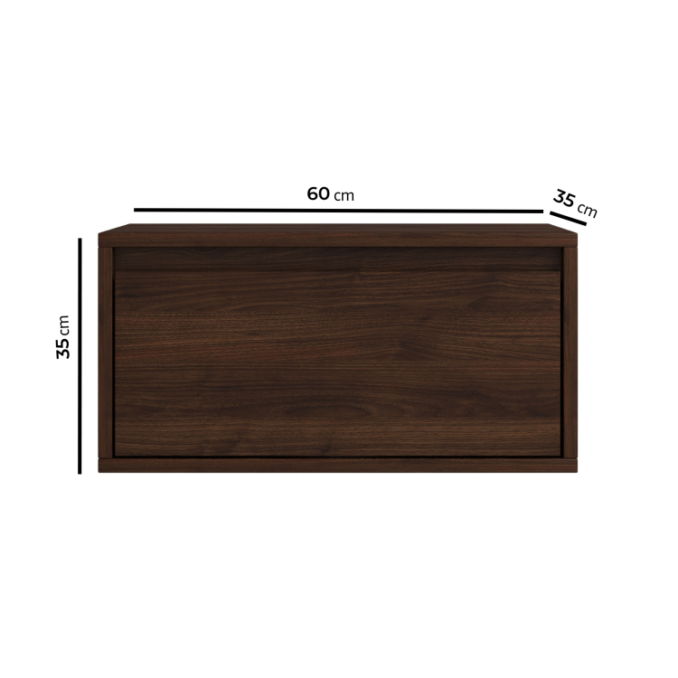 This wall-mounted bedside table combines style with practicality. Its clean lines and warm walnut finish create a modern look that enhances any bedroom. The handle-less push-catch cupboard door opens smoothly to reveal hidden storage for your essentials. Wall-mounted for a floating effect, it frees up floor space while keeping your bedroom feeling open, uncluttered, and functional.
