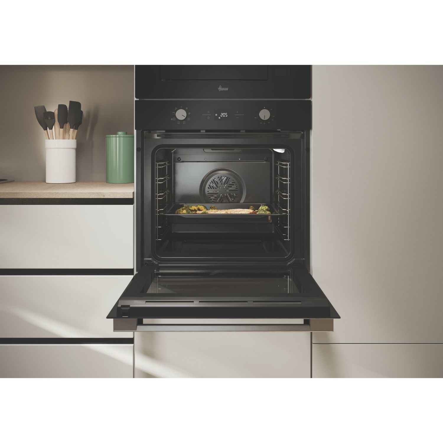 This Hoover 60cm built-in oven offers an impressive 78L capacity, ideal for cooking large meals or entertaining guests. With an A+ energy rating, it delivers efficient performance without compromising on cooking power. Featuring 9 versatile cooking functions, it’s equipped to handle everything from everyday meals to gourmet dishes. The combination of rotary and touch controls ensures intuitive operation, while the LED display makes program selection simple and clear.