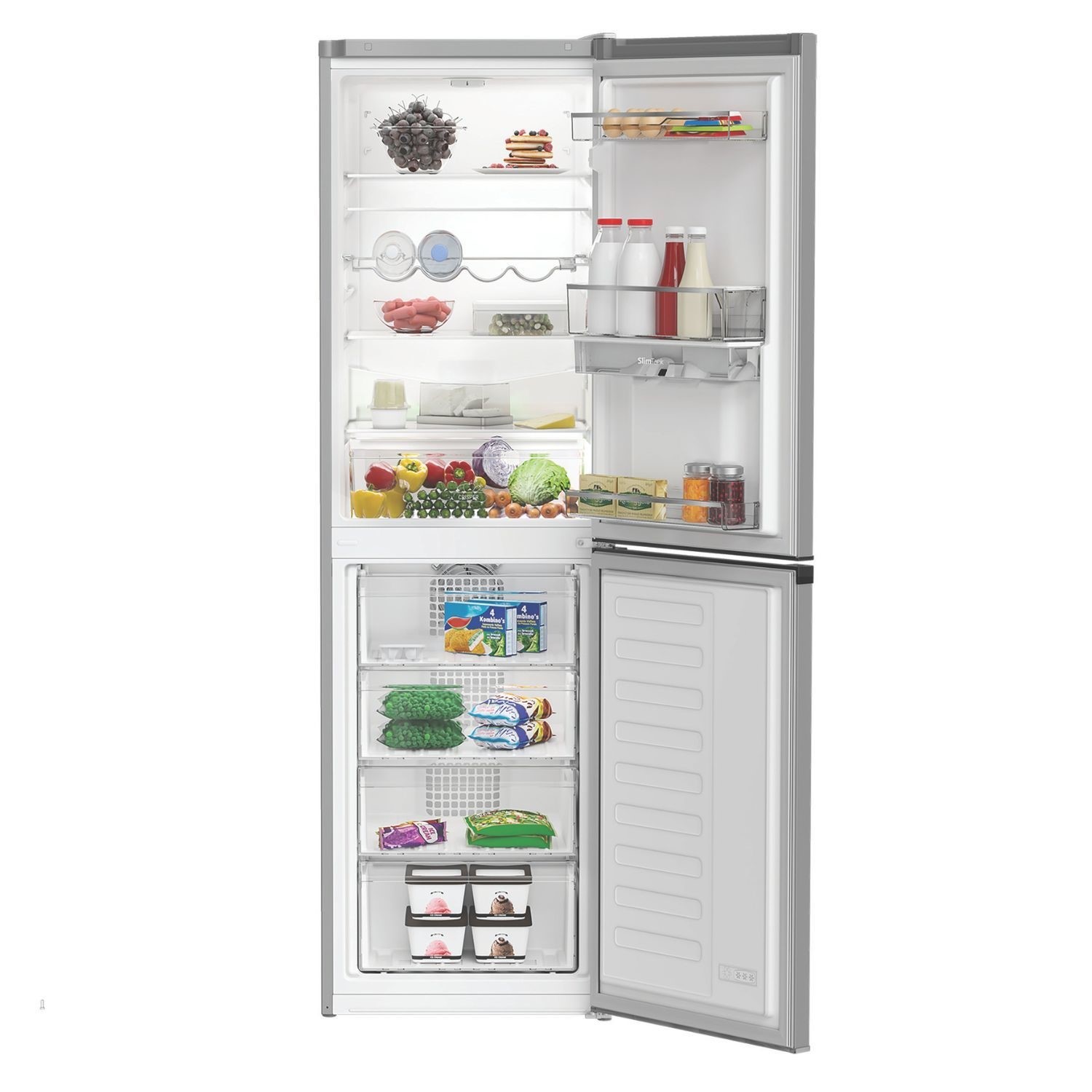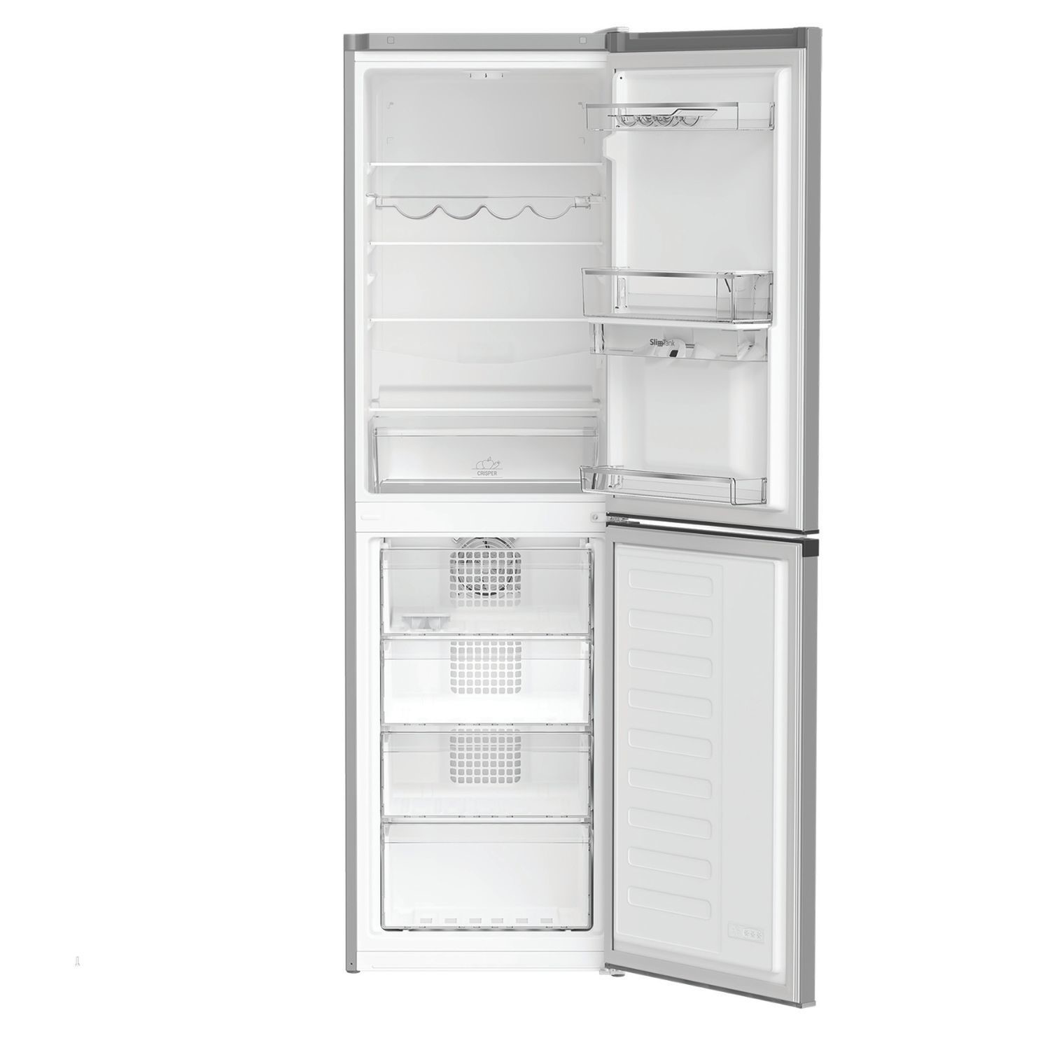 This Hotpoint freestanding fridge freezer offers a 50/50 split of fridge and freezer space and includes thoughtful technology focused on keeping your food fresh and reducing waste. Available in silver, it has a generous capacity of 270L, which is ample space for 15 shopping bags of groceries - perfect for the weekly shop.
