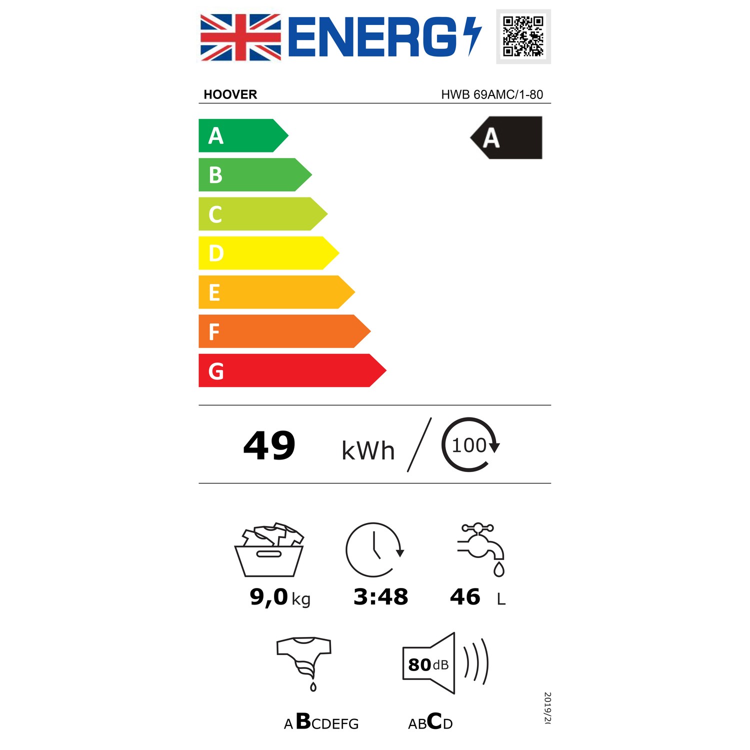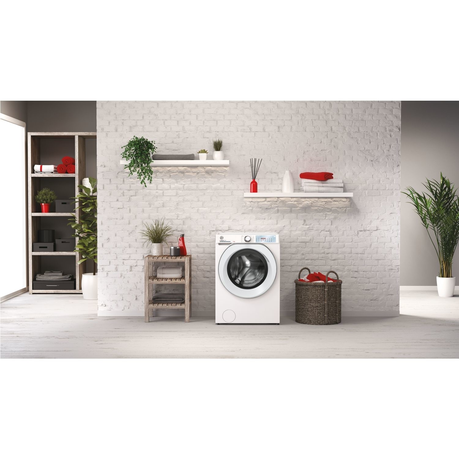 This Hoover washing machine from the H-Wash 500 range comes with an 8kg load capacity and a 1600 spin speed. There are 14 wash cycles to choose from, with 4 cycles below 60 minutes, including a 14-minute rapid wash. KG mode weighs the load during the first four minutes and adjusts the length of the programme and the water consumption accordingly. This machine also comes with the option to delay the cycle start time for up to 24 hours. Variable spin and temperature settings allow you to adjust the spin speed and temperature on all cycles to suit the load. Fitted with Wi-Fi technology, you can connect your android smartphone to the machine, giving you the ability to keep an eye on your washer with the hOn app on your phone.