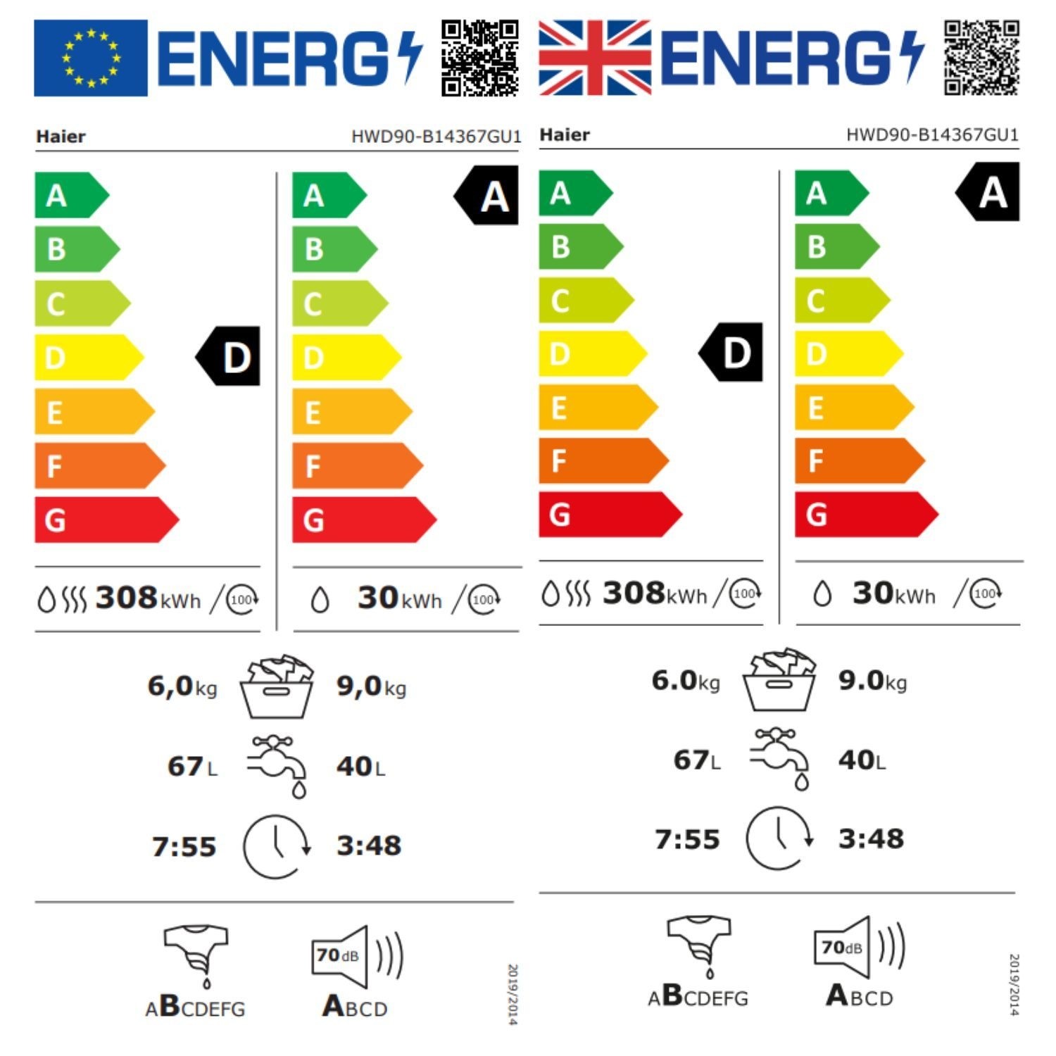 Transform your laundry routine with the Haier X Series 7 HWD90-B14367GUUK, a versatile washer dryer designed for busy households. This freestanding graphite appliance features a large 9kg wash and 6kg dry capacity, allowing you to breeze through family-sized loads in a single machine. It is exceptionally efficient, boasting an A-30% energy rating(1) for wash cycles that helps lower your utility bills while remaining kind to the planet.