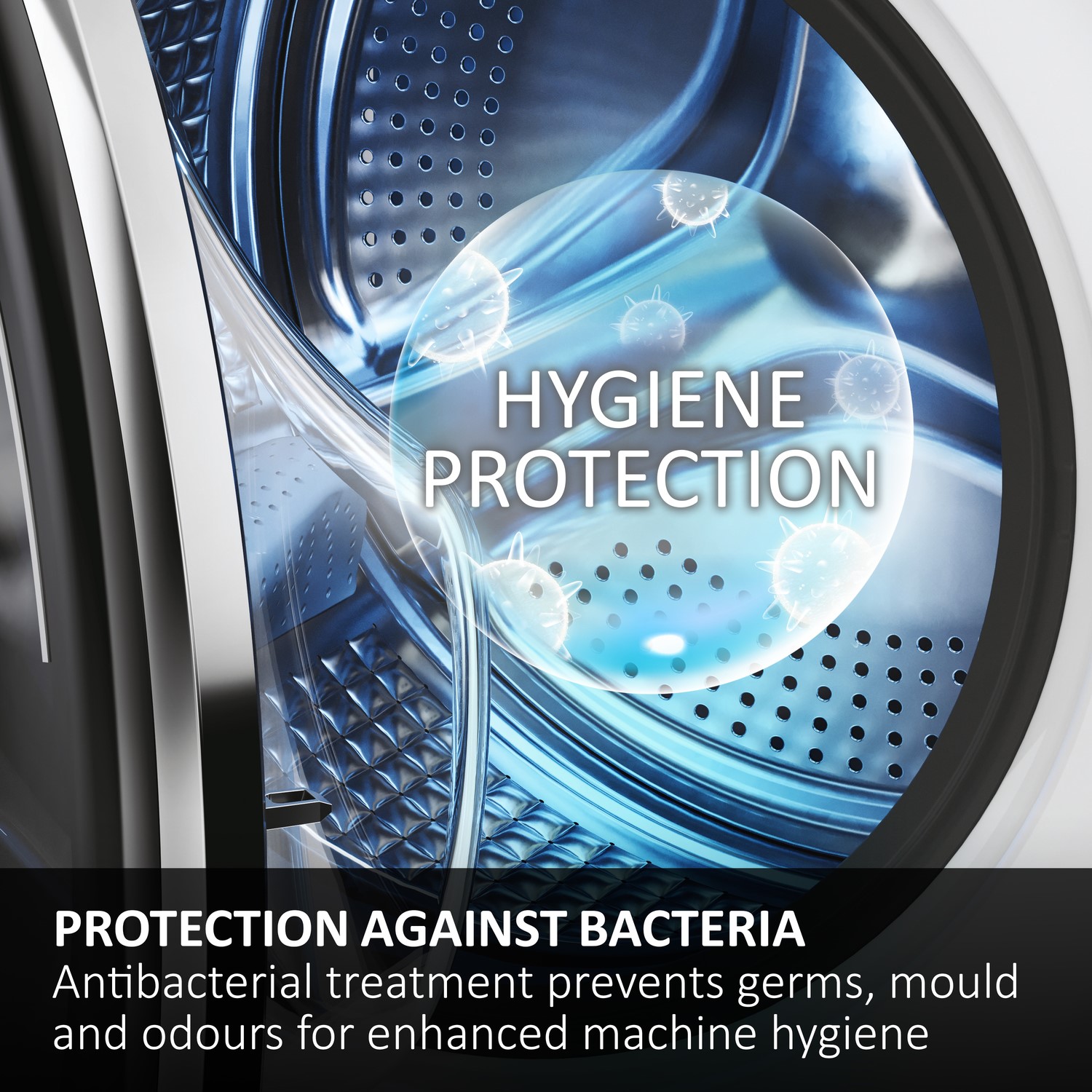 Keep your machine and clothes truly clean with the Smart Dual Spray system that cleans the door and gasket after every cycle. This works alongside the Anti-Bacterial Treatment (ABT) to prevent mould and bacteria growth in the detergent drawer and porthole.