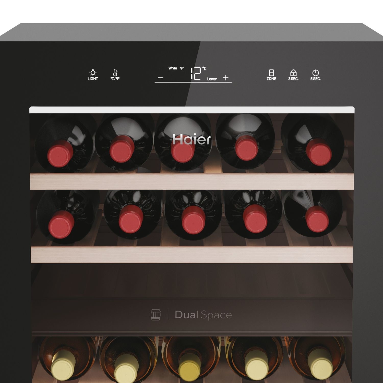 The warm colour of the 3D LED lights in Haier's wine cellars give your wines the dazzling spotlight they deserve from the top and sides. This ensures that the whole cellar is illuminated, from top to bottom, resulting in a stunning effect.