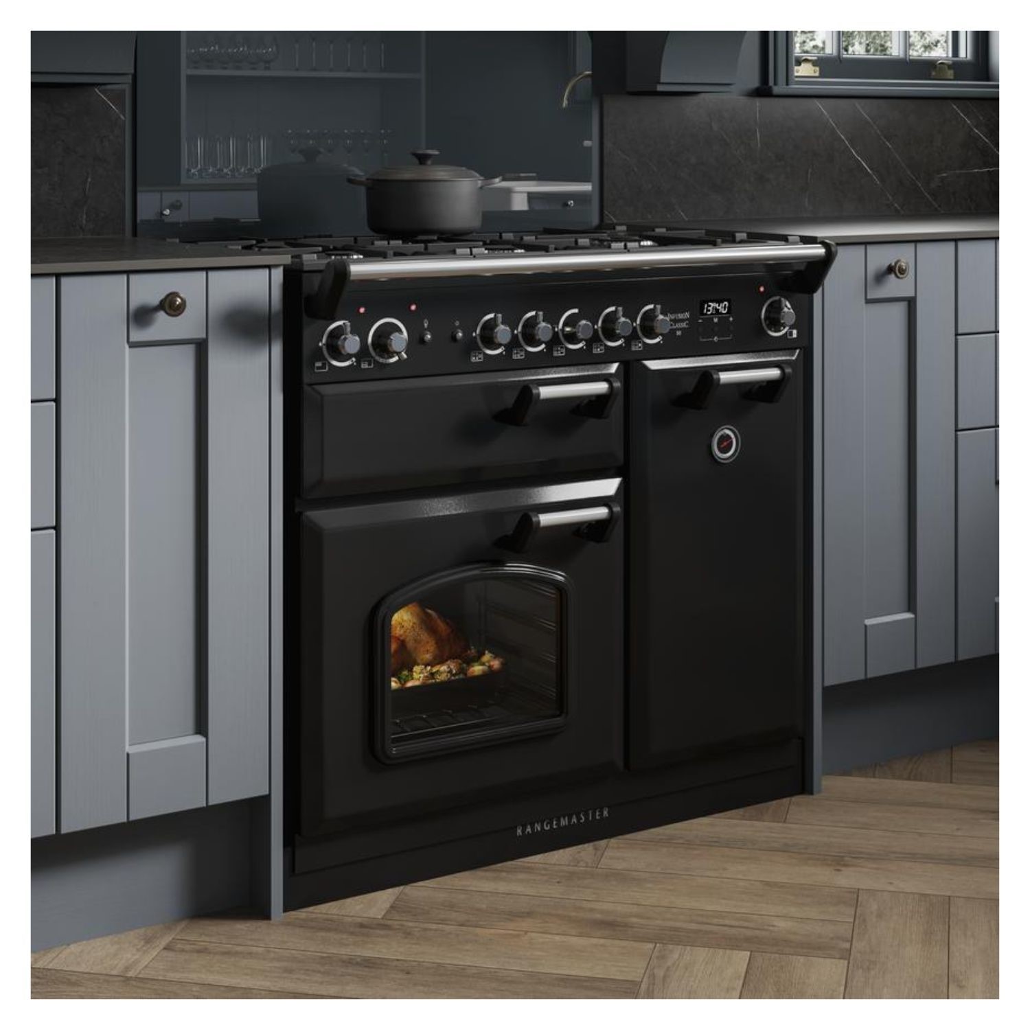 A truly traditional range cooker with a modern twist, the new Infusion Classic design features our renowned baker-style viewing windows for a clear view of what’s cooking inside. It also comes complete with robust steel handles, telescopic shelving for safe, easy access to your dishes as well as an ergonomic glide-out grill and fan ovens. With two sizes and dual fuel or induction to choose from, this model also comes with a branded Rangemaster plinth to finish the look.