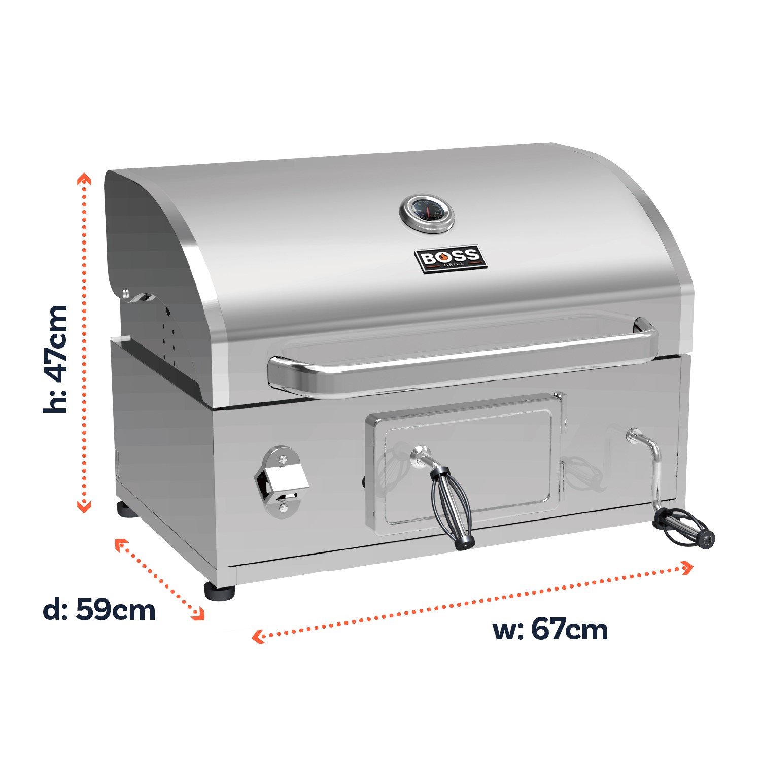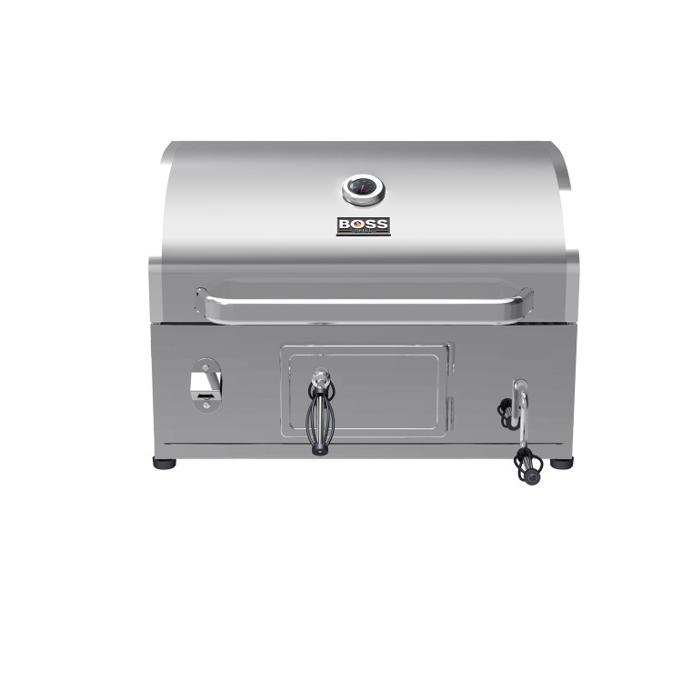 - Stainless steel charcoal BBQ with hood