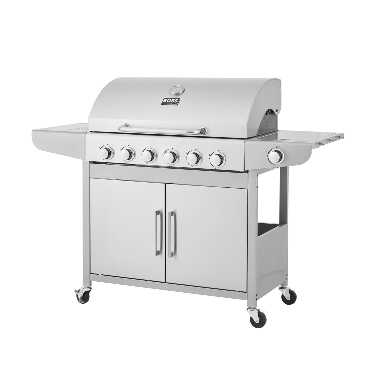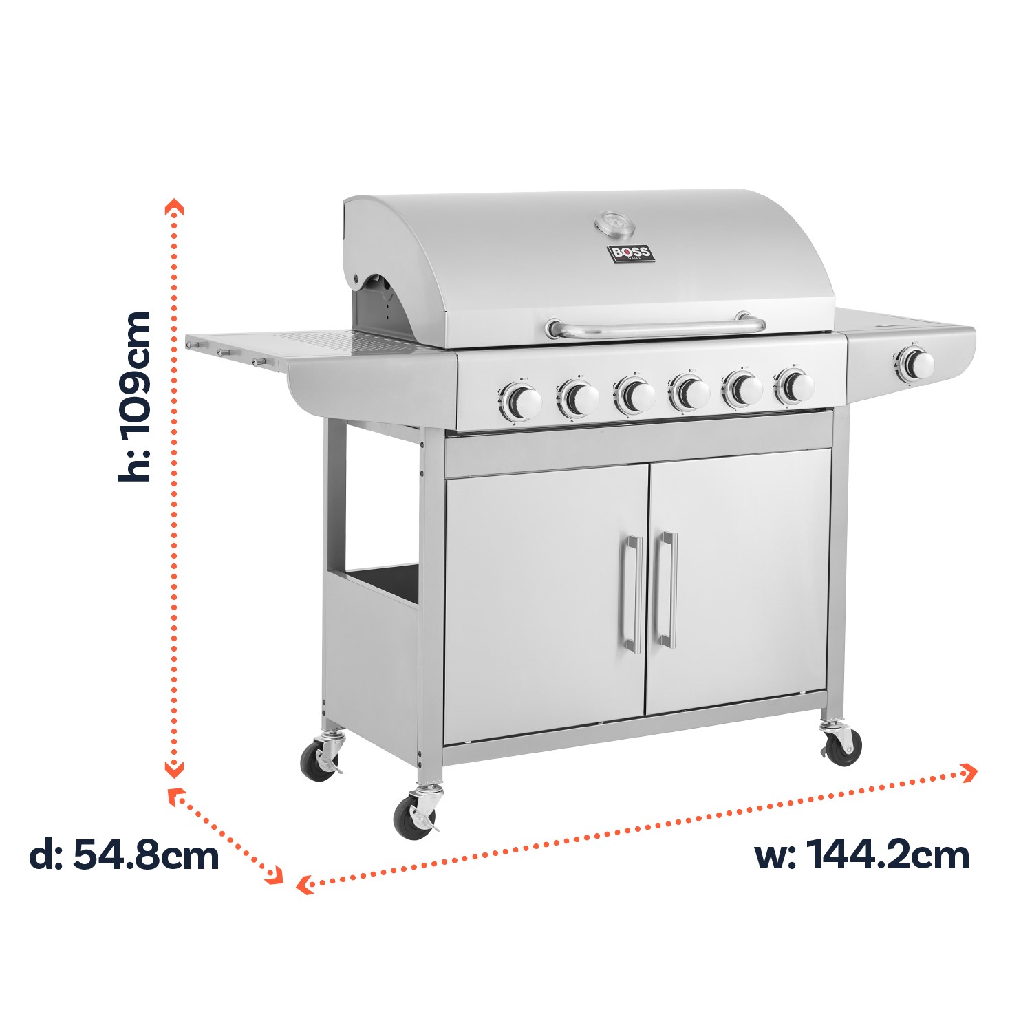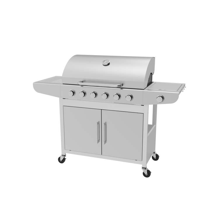 Fire up your summer gatherings with this 6-Burner Gas BBQ with Side Burner — the ideal choice for families and first-time grillers looking for performance, space and style at an affordable price. With six stainless steel burners and a powerful 2.5kW side burner, you can cook everything from perfectly seared steaks to sizzling sides all at once. The large 82×42 cm cooking area and warming rack make it easy to serve everyone at the same time, while durable cast-iron cooking grids with griddle plate lock in flavour and deliver even heat across the grill.