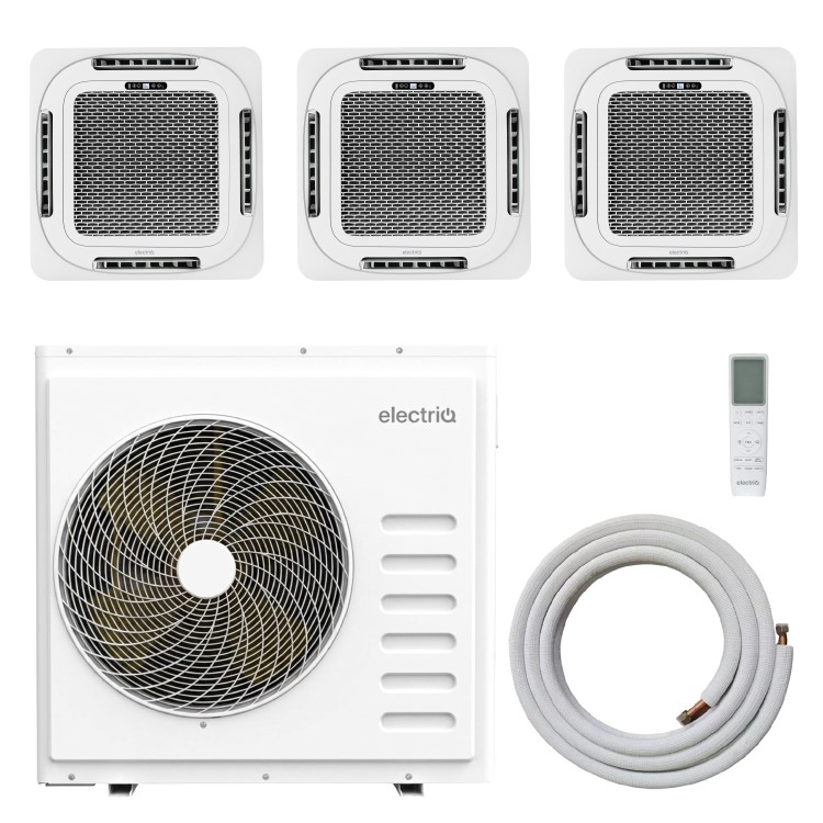 This air conditioner isn't just for cooling; it’s a true all-year-round unit that both cools and heats. While other units only have two air outlets, this has four outlets that allow the air to flow out over 360 degrees ensuring maximum efficiency and making sure the air is distributed throughout the entirety of your space. It doesn't just keep your environment at a stable temperature, it does so using an A++ ultra energy efficient super DC inverter ensuring that your energy bills stay low. The outer unit guarantees fresh air intake so that if you have a room with no windows you'll never have stale air. The electriQ multi-split ceiling cassette air conditioner comes with an impressive 5 year warranty for peace of mind.