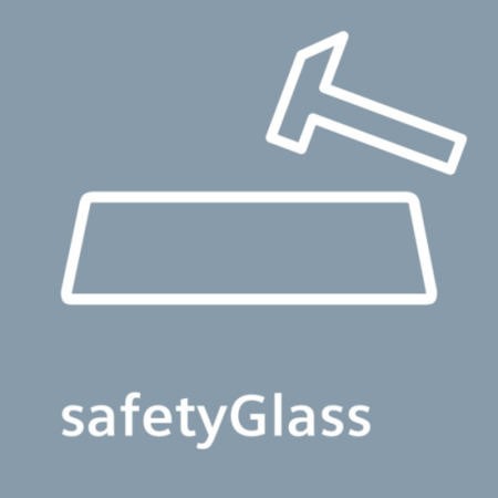 - 5 safety glass shelves of which 3 are height adjustable