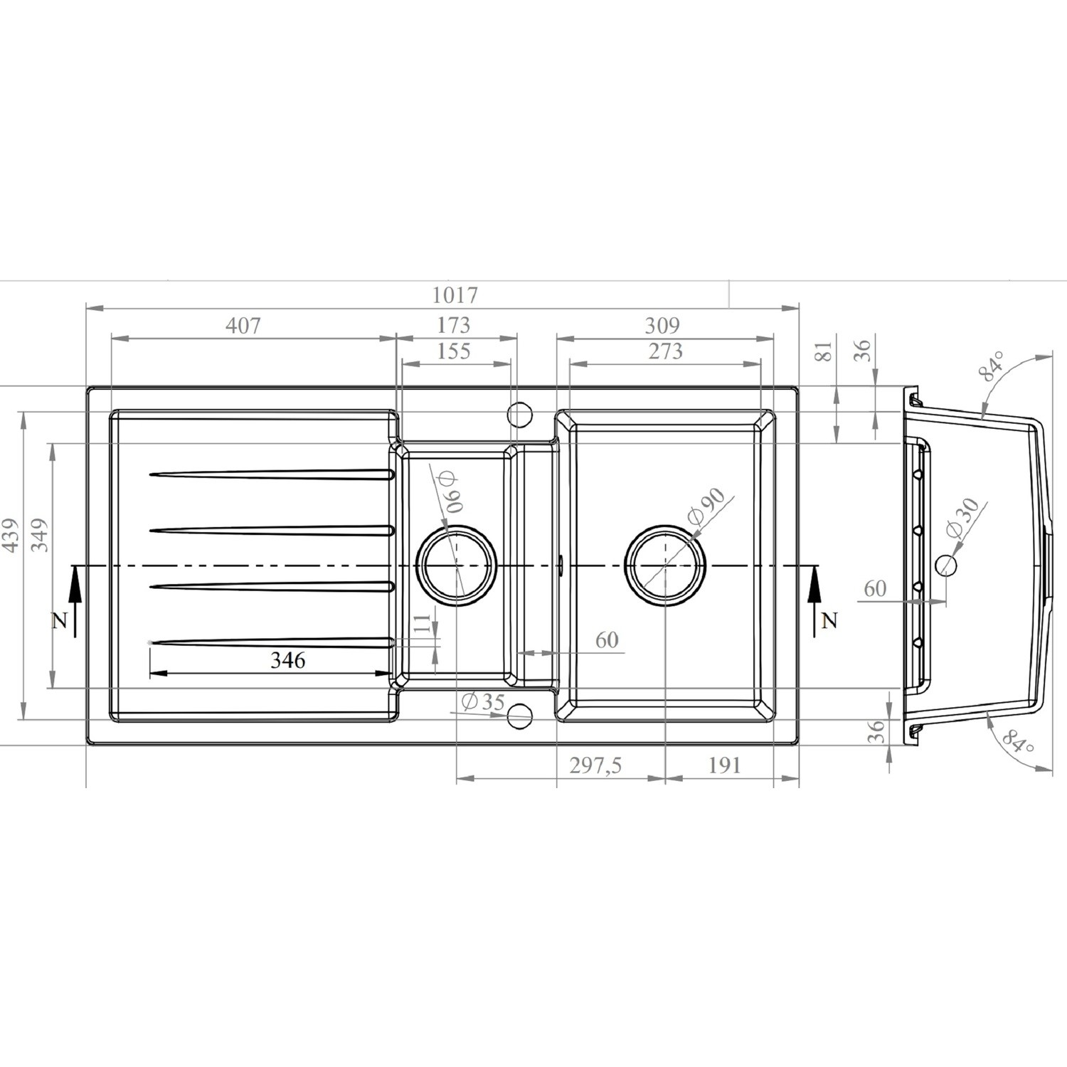 1.5 Bowl White Granite Composite Inset Kitchen Sink & Waste - 1017 x 512mm - Laurie