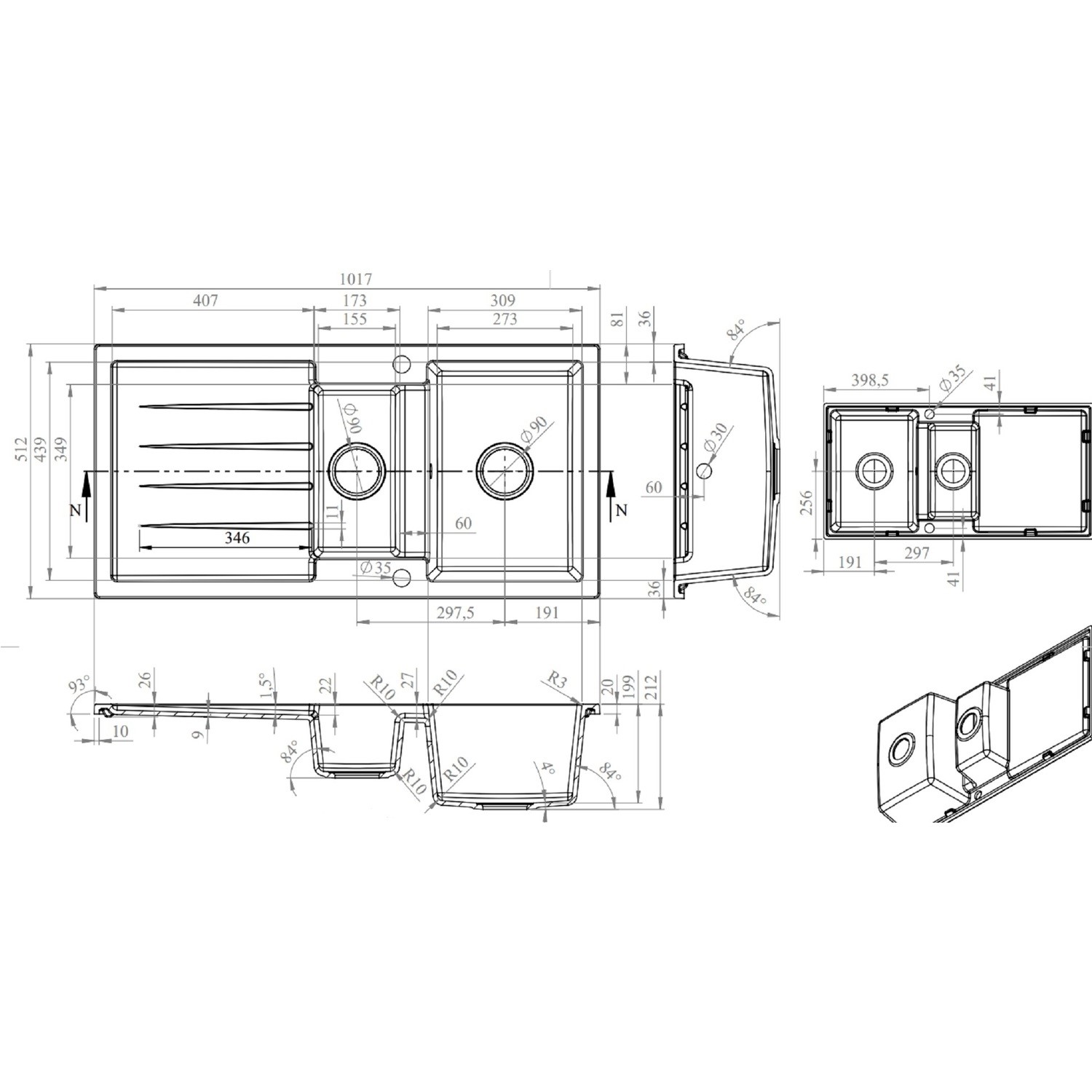 - Sink Material thickness: 12mm