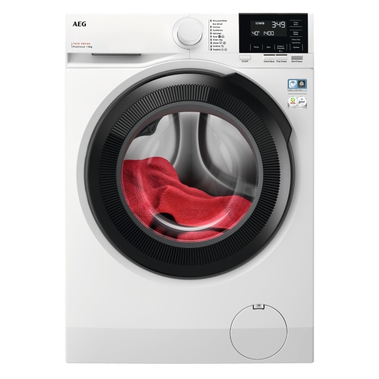 Washing machine. 7000 Series, ProSteam, 8kg wash capacity, 1400rpm, Black door. Energy A-40%. Medium LED display