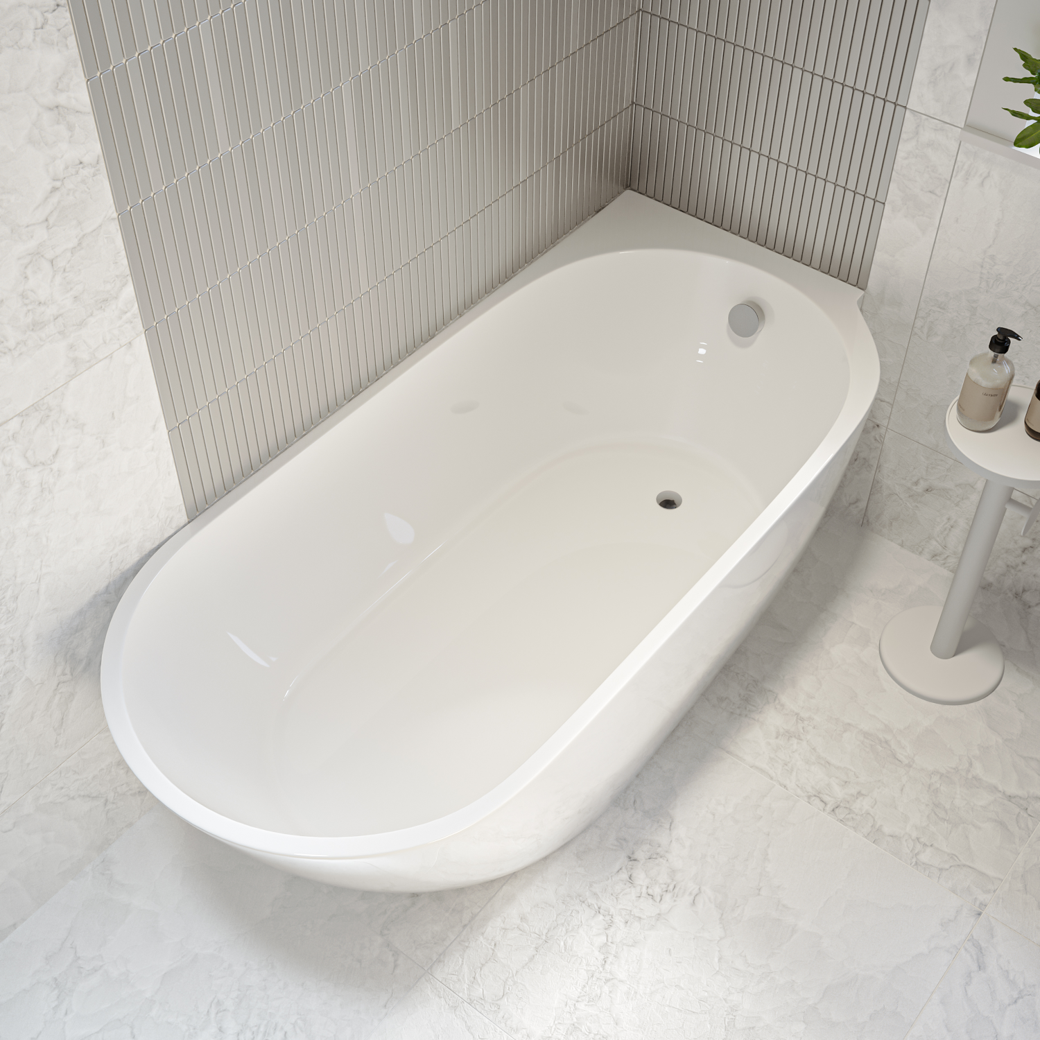 The modern Lisbon freestanding shower bath combines the comfort of a bath with the convenience of shower in one sleep, space-spacing design. It's sculptural matt white finish makes a stylish focal point, while the defined showering end offers generous standing space and a built-in ledge for toiletries. Made from 4-6mm acrylic, reinforced with fibreglass and an encapsulated baseboard, it delivers lasting strength, warmth, and a 240-litre capacity for both indulgent soaks and refreshing showers.