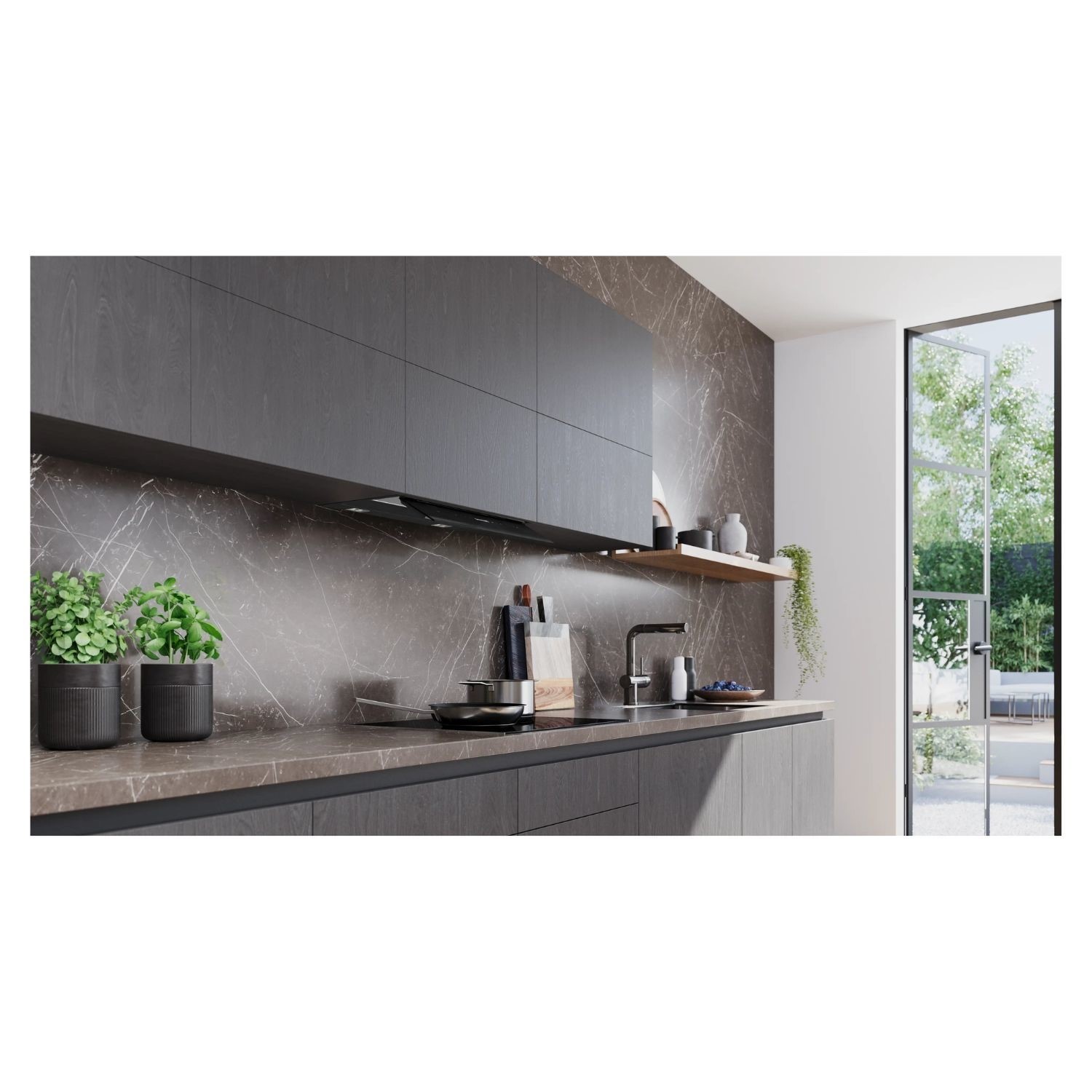 The black matt finish brings modern minimalism to your kitchen. With its premium matt coating, the integrated design hood blends seamlessly into contemporary interiors. The coating not only looks refined — it also reduces the sensitivity to fingerprints, helping your kitchen stay cleaner for longer with minimal effort.