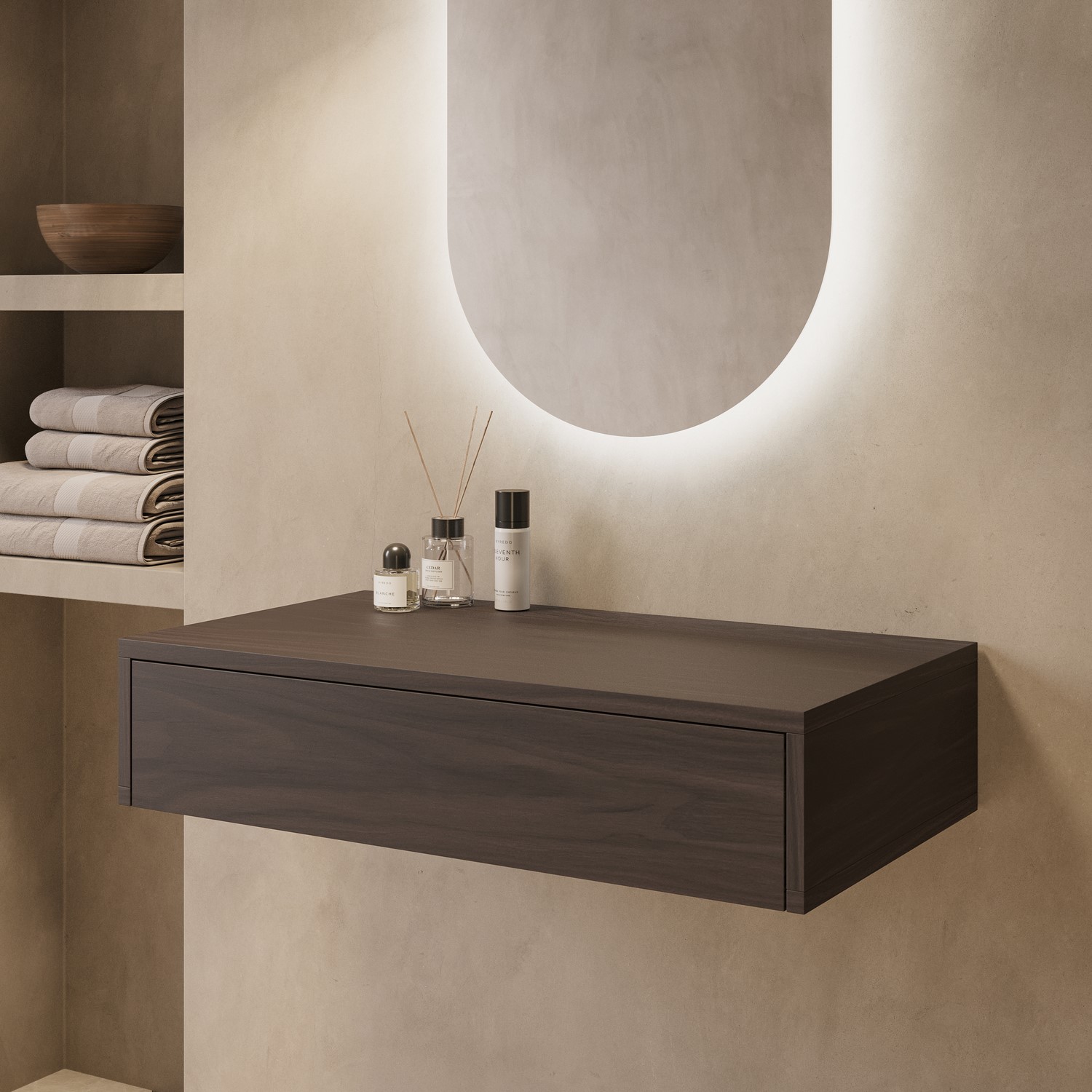 Integrated Drawer Storage: Features a discreet, soft-close drawer perfect for storing toiletries and bathroom essentials.