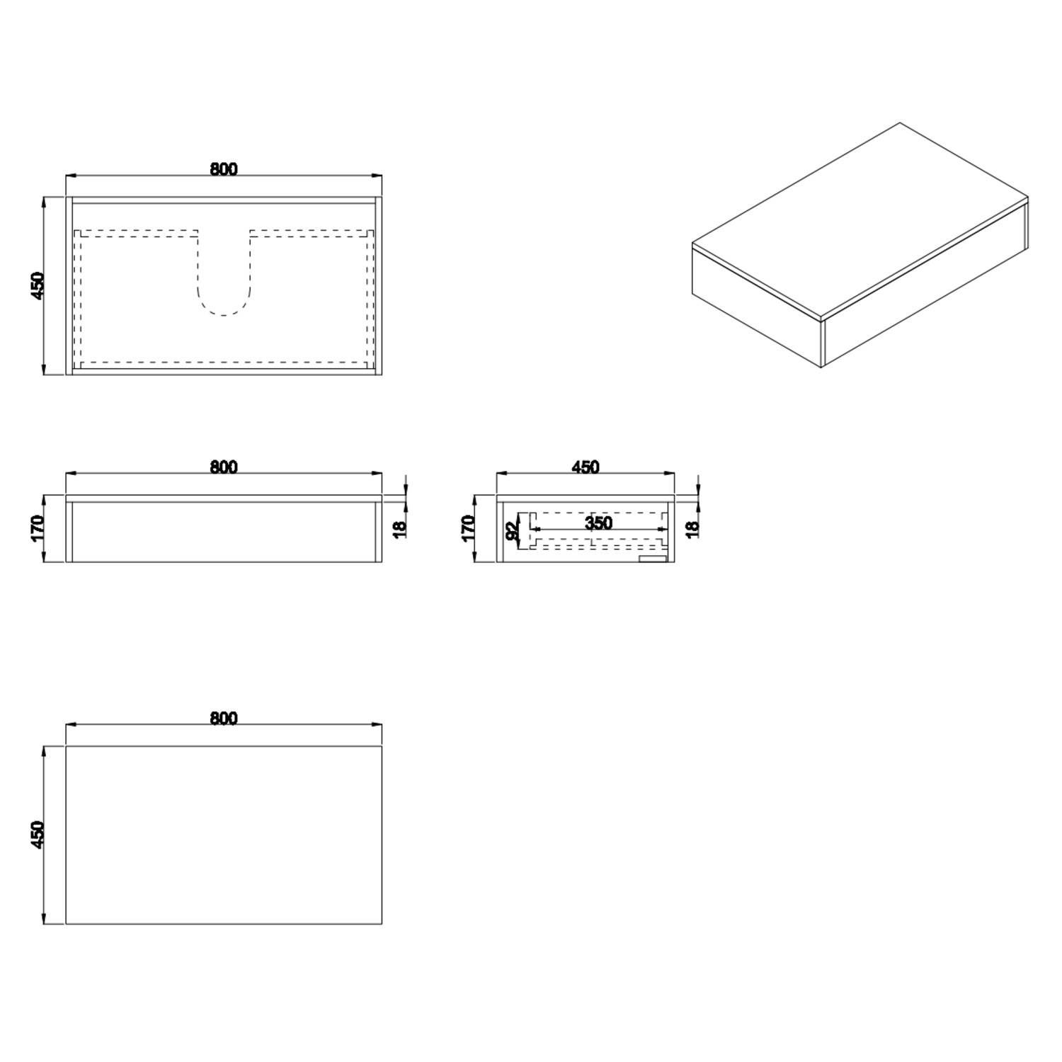 - Vanity Unit Dimensions: H170 x W800 x D450 mm (give or take -/+ 3mm per measurement)