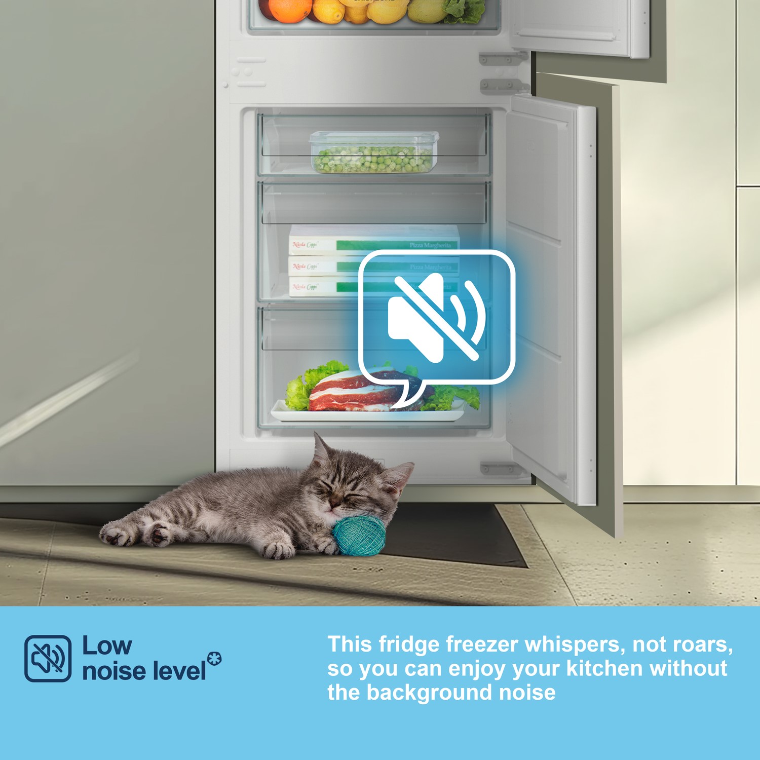 Slide in the soft scoop and keep those groceries chilled with this Hisense advance series integrated fridge freezer. It has a Total No Frost system that automatically stops frost forming inside and it rapidly chills your shopping as soon as you pop it inside, meaning everything stays fresh and full of flavour. And with adjustable shelves, you'll have plenty of room for heaps of tasty pizzas. Treat yourself.