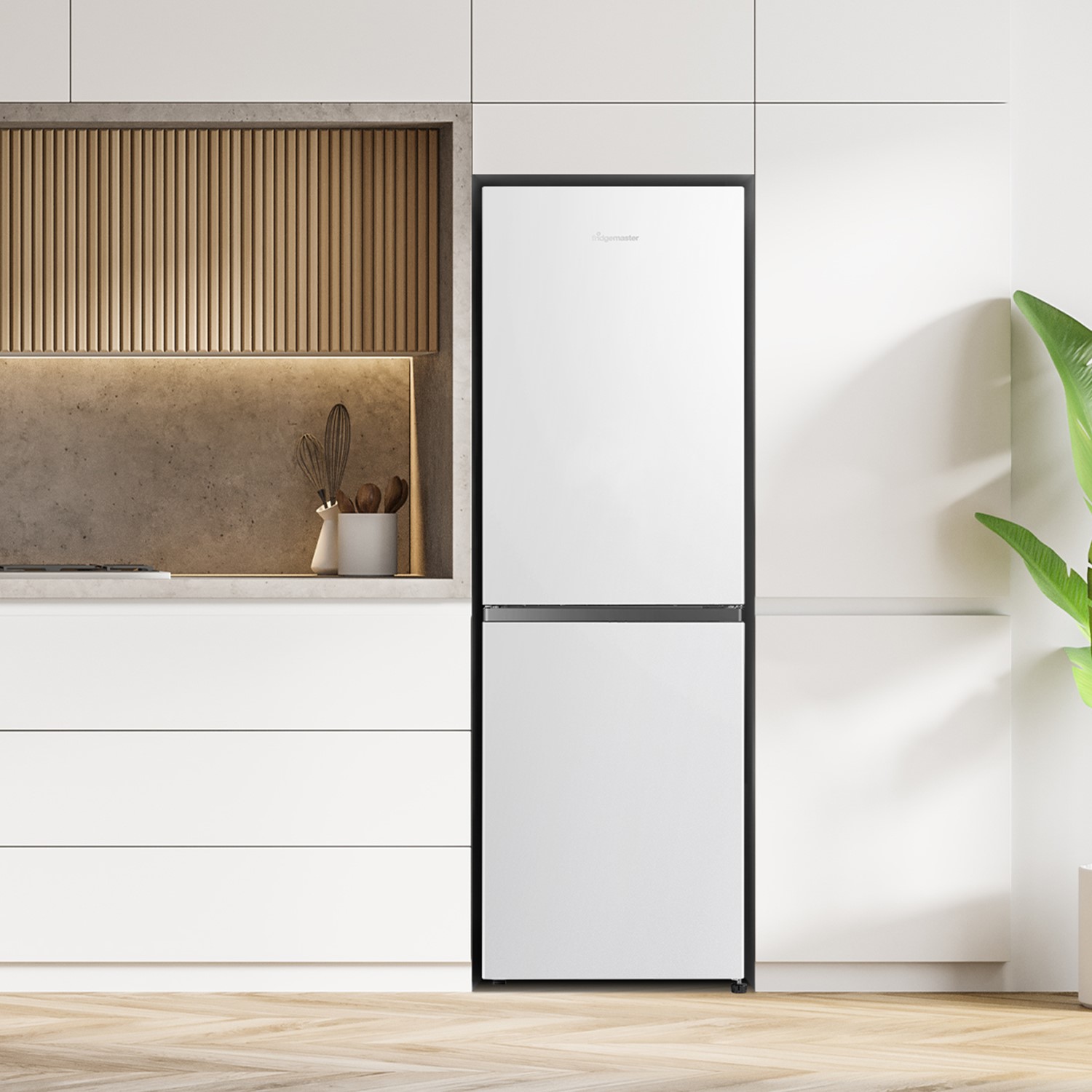 The Fridgemaster Mc55240E 50/50 Freestanding Fridge Freezer, with handy storage for medium size householders. Interior Soft LED Lights for plenty of illumination, low noise, and easy to swap the door hinges for perfect kitchen placement.