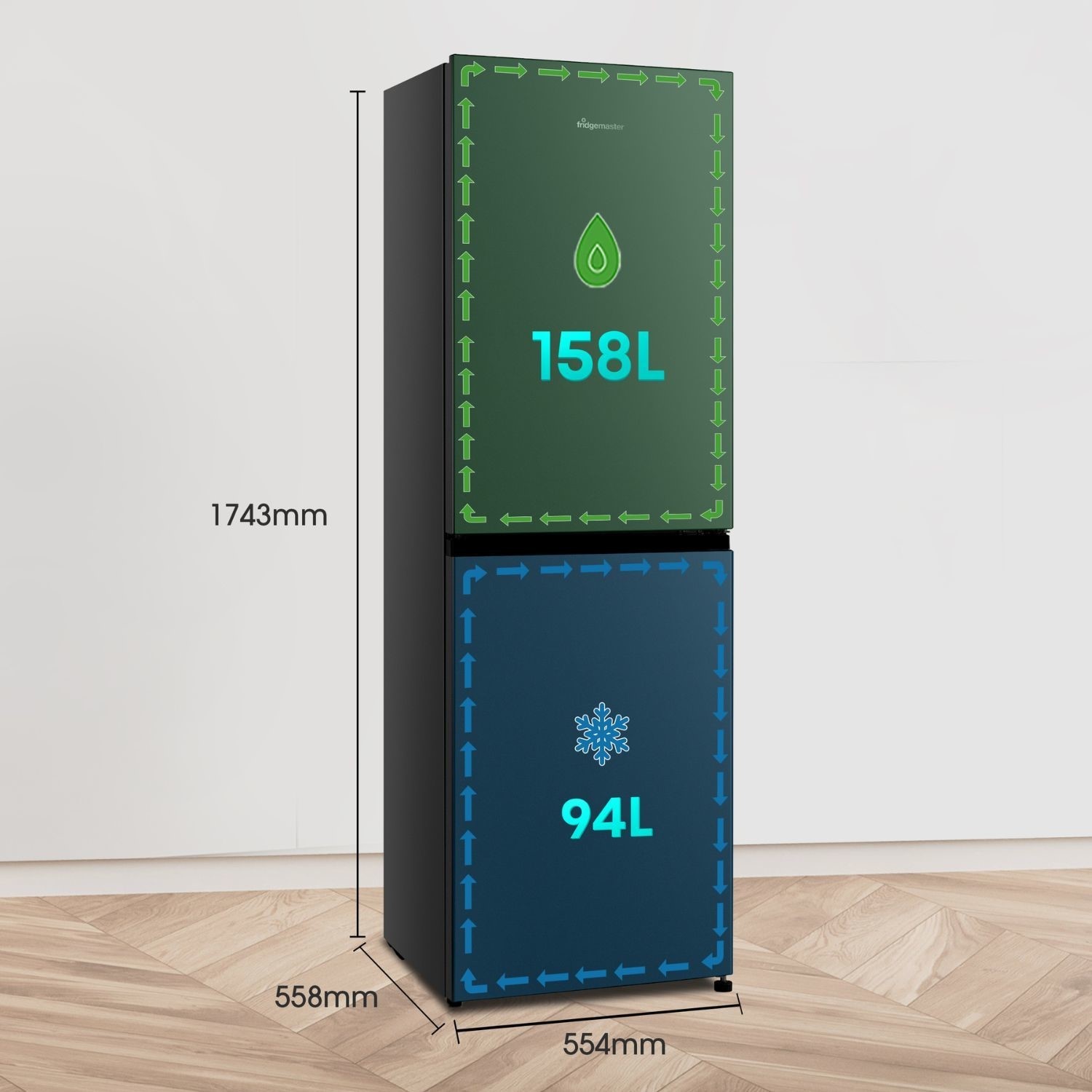 The Fridgemaster fridge freezer is here to make your kitchen life a breeze! With 252L of space, it’s perfect for stashing all your groceries without taking over your kitchen. The handy LED light lets you see everything inside, the dial control is simple for you to set the temperature, and the pull-out easy freezer tray means no more awkwardly digging through frozen food. And the super-low noise level ensures peace and quiet in the heart of your home. Reliable, efficient, and hassle-free, the Fridgemaster makes food storage a total breeze.