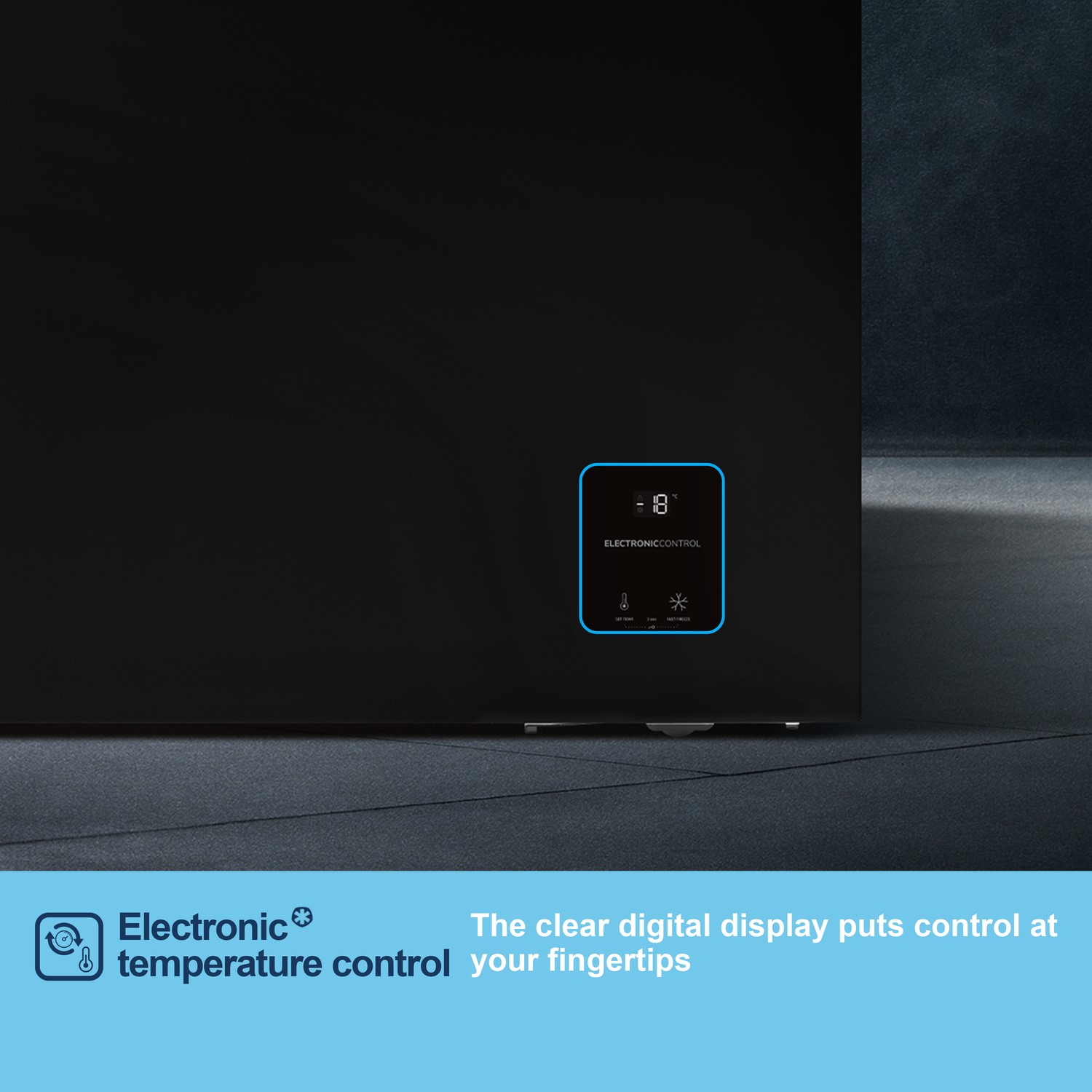 This compact design freezer is suitable for various locations, while the black exterior adds a modern touch. With energy-efficient operation and a lockable lid for added security, this chest freezer is versatile and practical for storing a variety of frozen goods.
