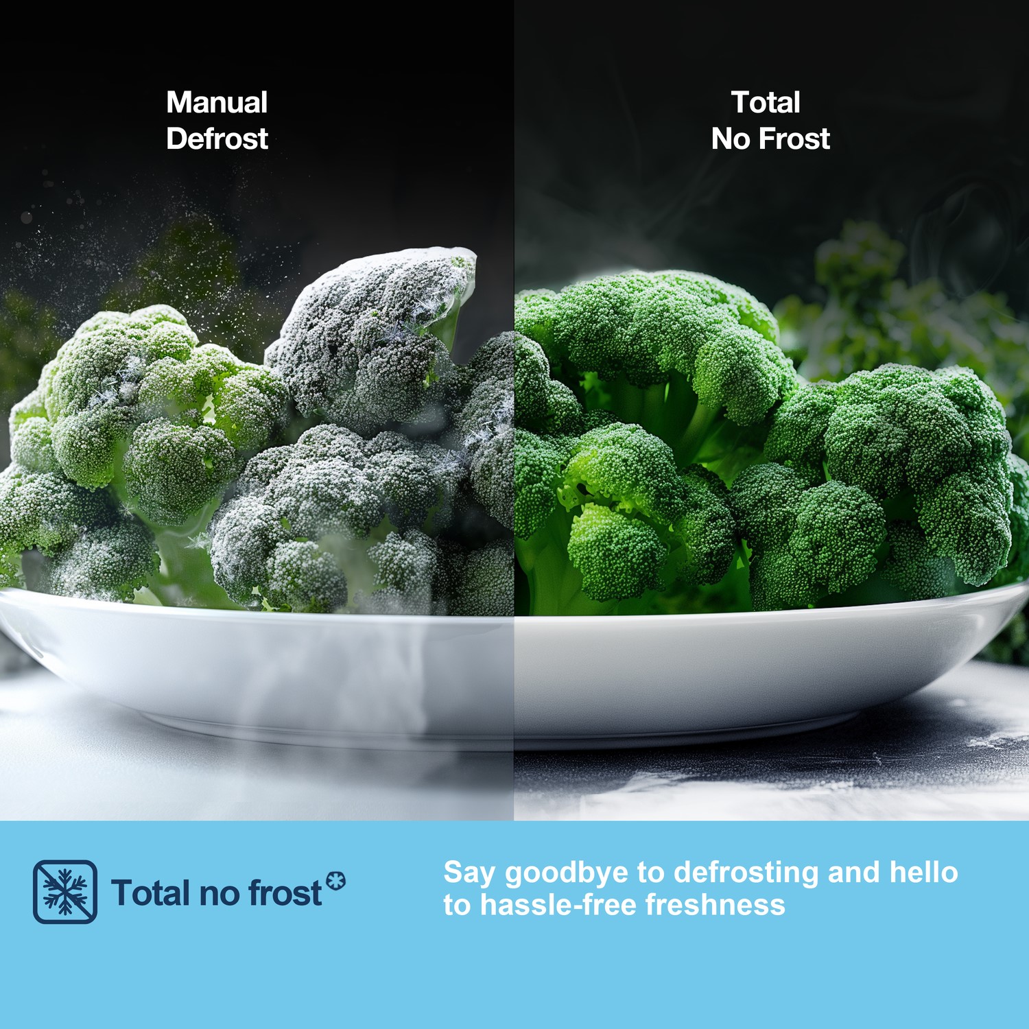 Our clever Total No Frost technology is the end of icy build-ups for good. You can finally delete that tedious chore of chipping away at your freezer - your Sunday is yours again!