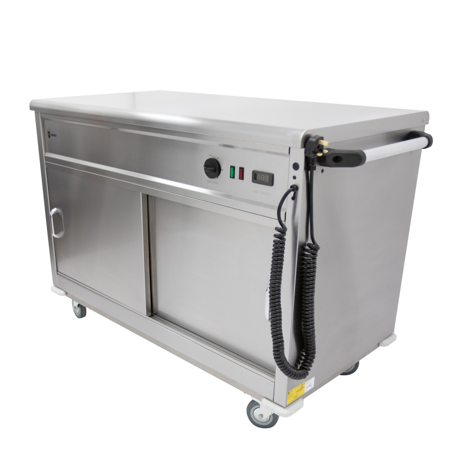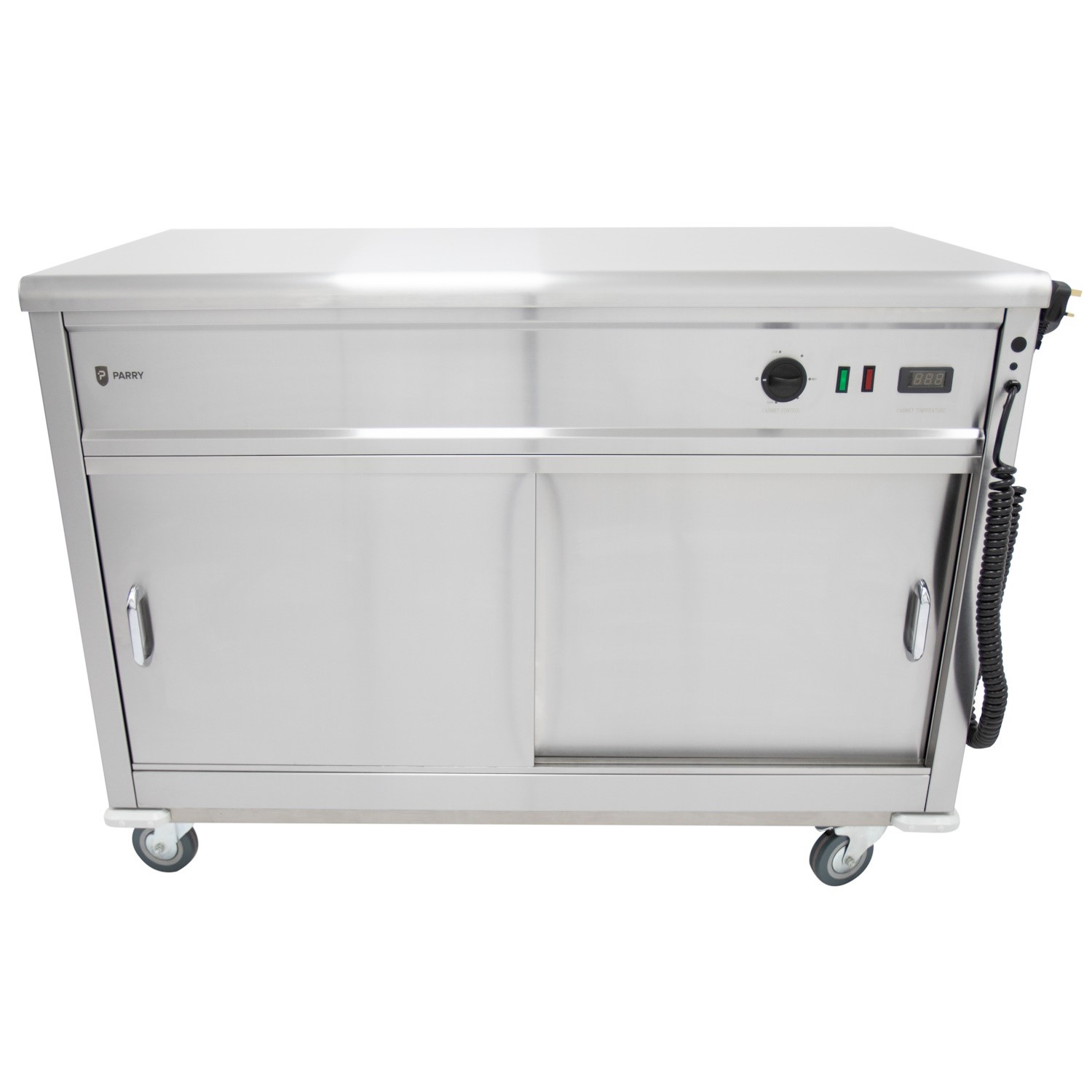 Parry MSF12 Mobile Flat Top Servery Counter And Hot Cupboard. 1305mm Wide. UK Plug. Made In Britain