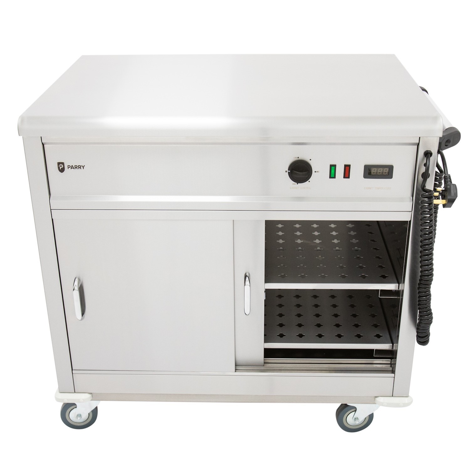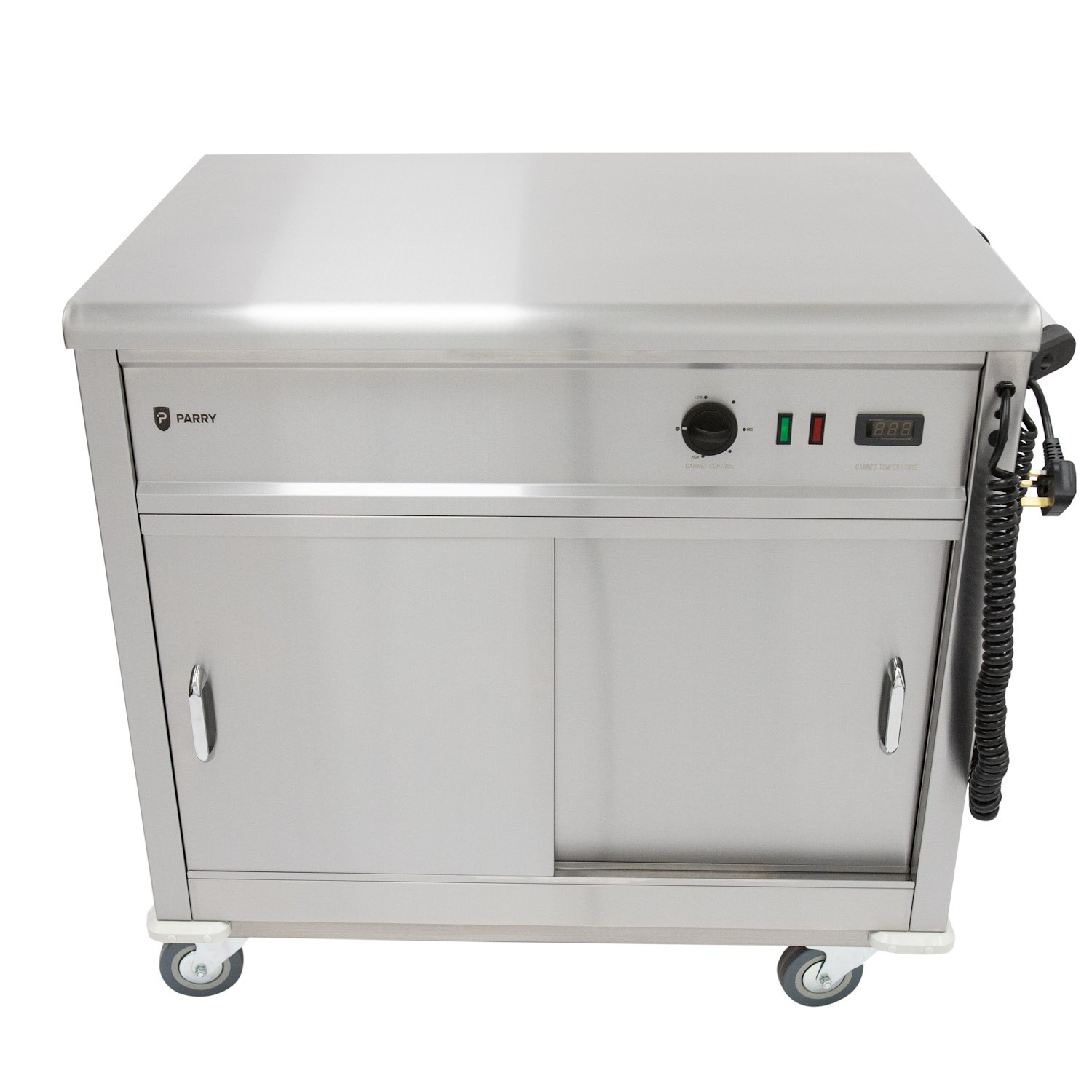 Parry MSF9 Mobile Flat Top Servery Counter And Hot Cupboard. 1005mm Wide. UK Plug. Made In Britain