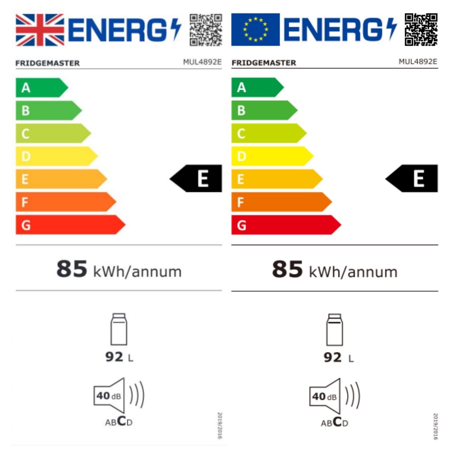 Cool runnings in white, black or silver. Meet the Fridgemaster MUL4892 series, your new best mate in the kitchen. This freestanding fridge packs a cool 92 litres of space into its compact frame. It's perfect for small spaces or as a secondary fridge, ready to keep your drinks chilled and your snacks fresh. And don’t worry about the noise—this fridge is as quiet as a cat on tiptoes with just 40 dB. Plus, its reversible door swings right or left, fitting your layout perfectly. It's energy-efficient, eco-friendly, and easy on the eyes!