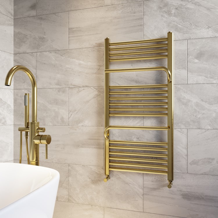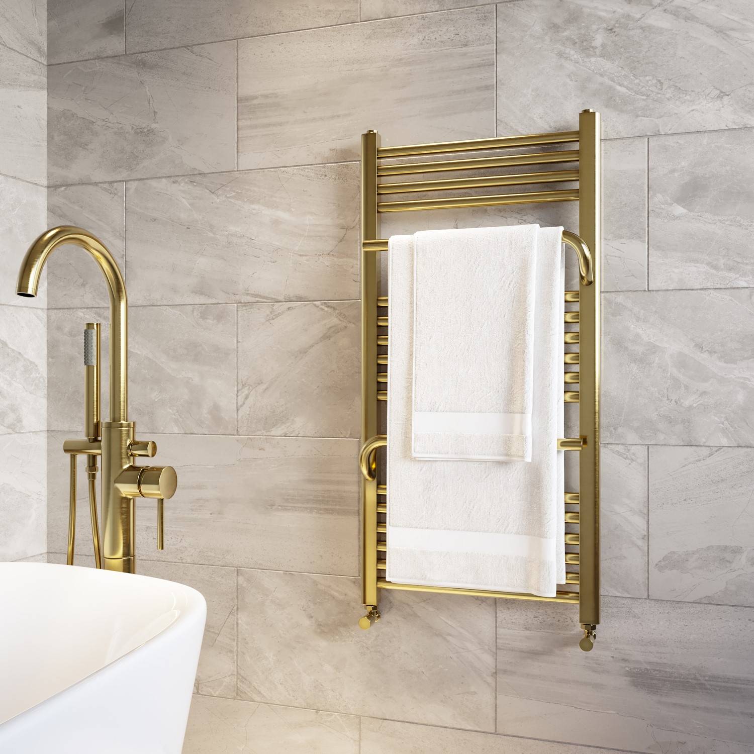 Sleek Brushed Brass Finish: Showcasing rich, warm brass tones and a luxurious brushed texture, this towel radiator adds understated elegance to modern bathrooms.