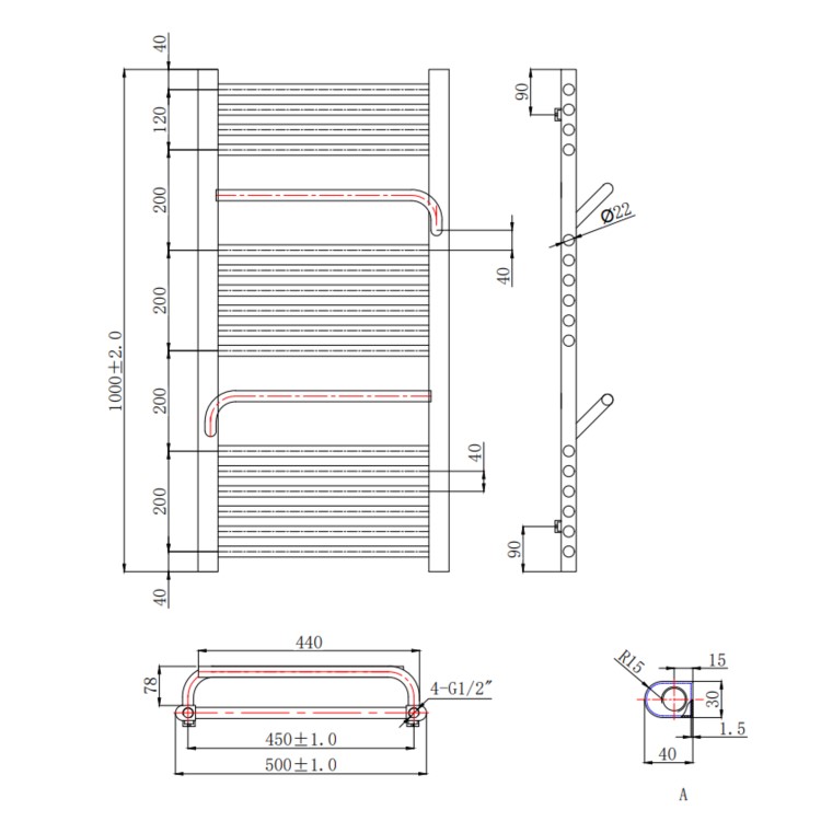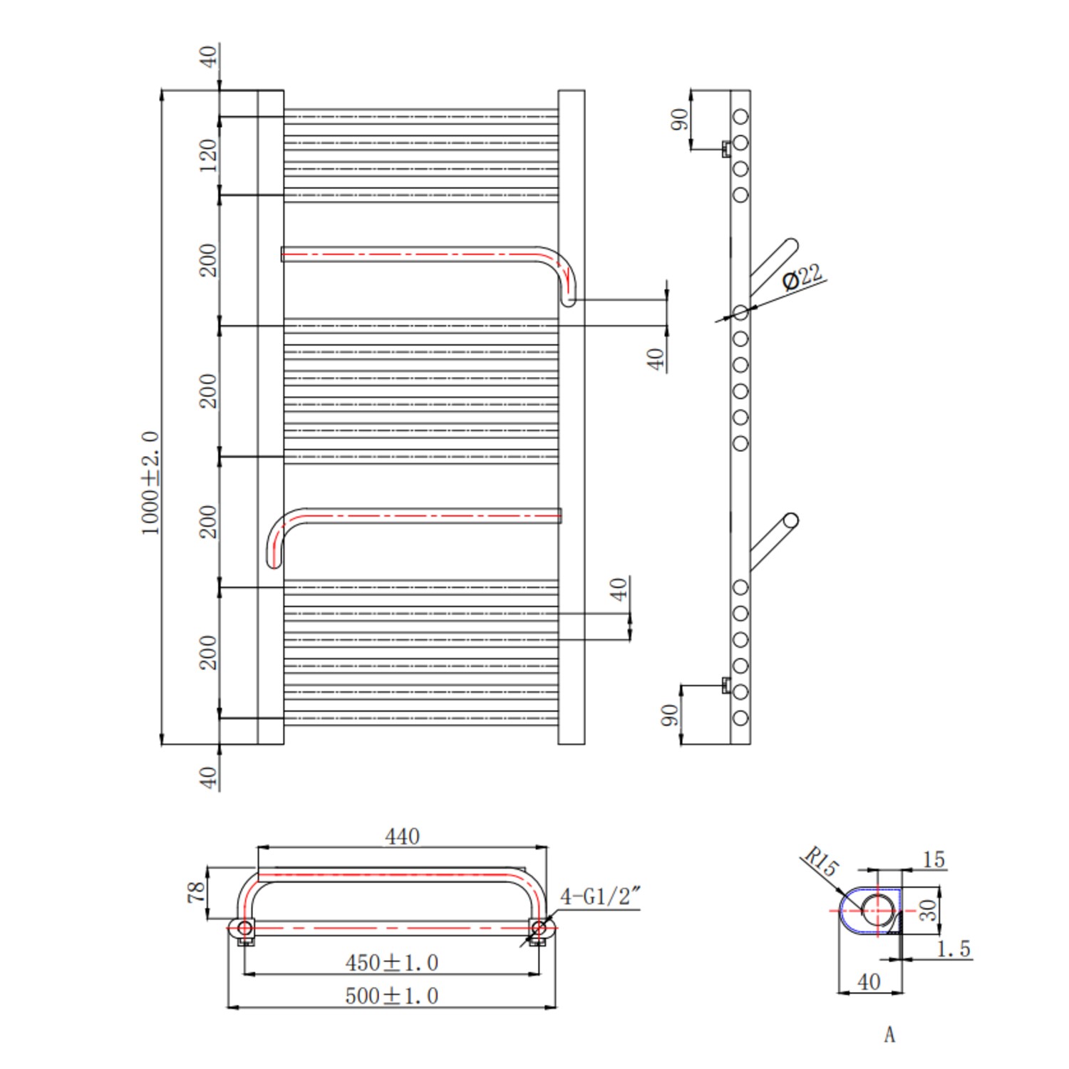 - Radiator Dimensions: H1000mm x W500mm x D149mm