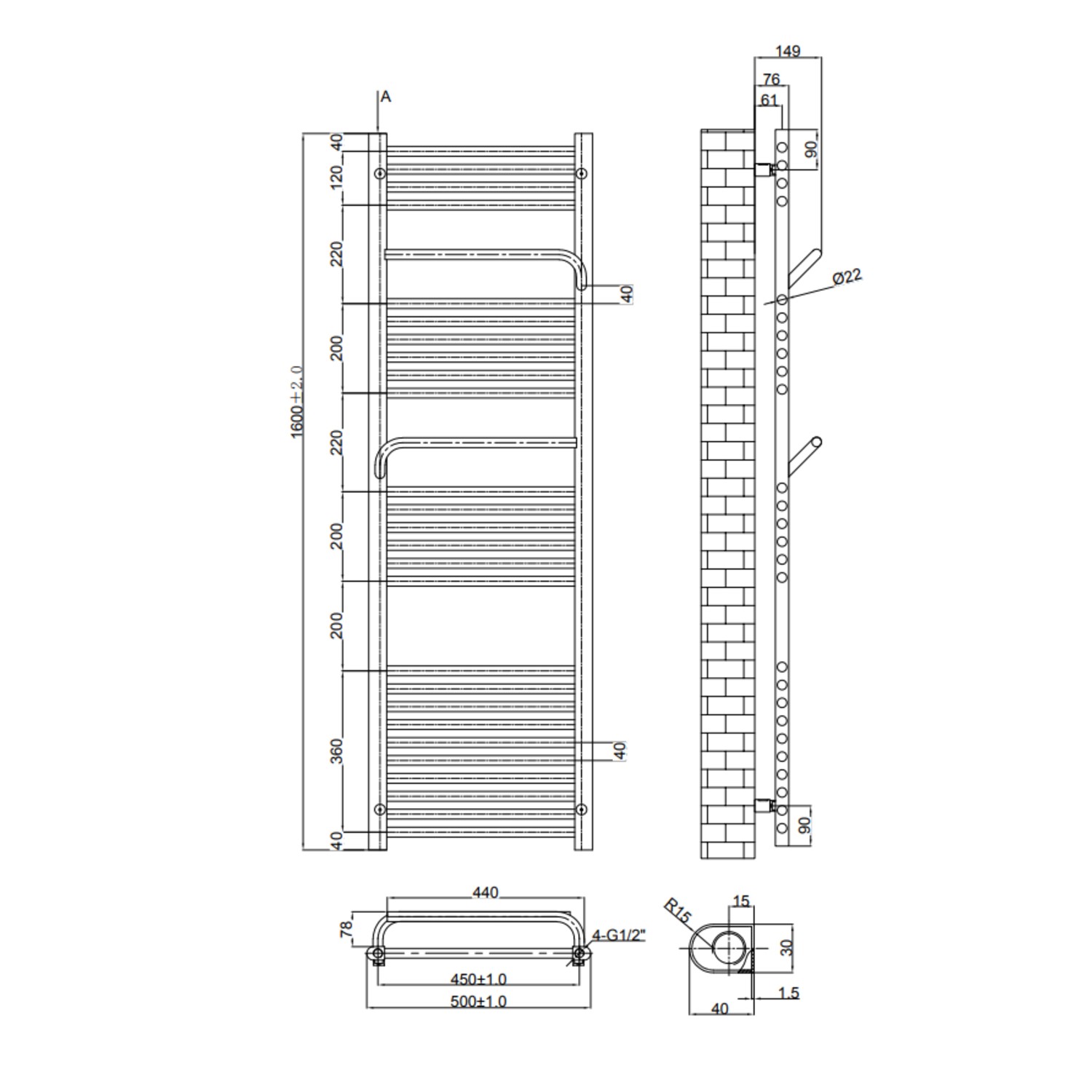 - Radiator Dimensions: H1600mm x W500mmx D149mm