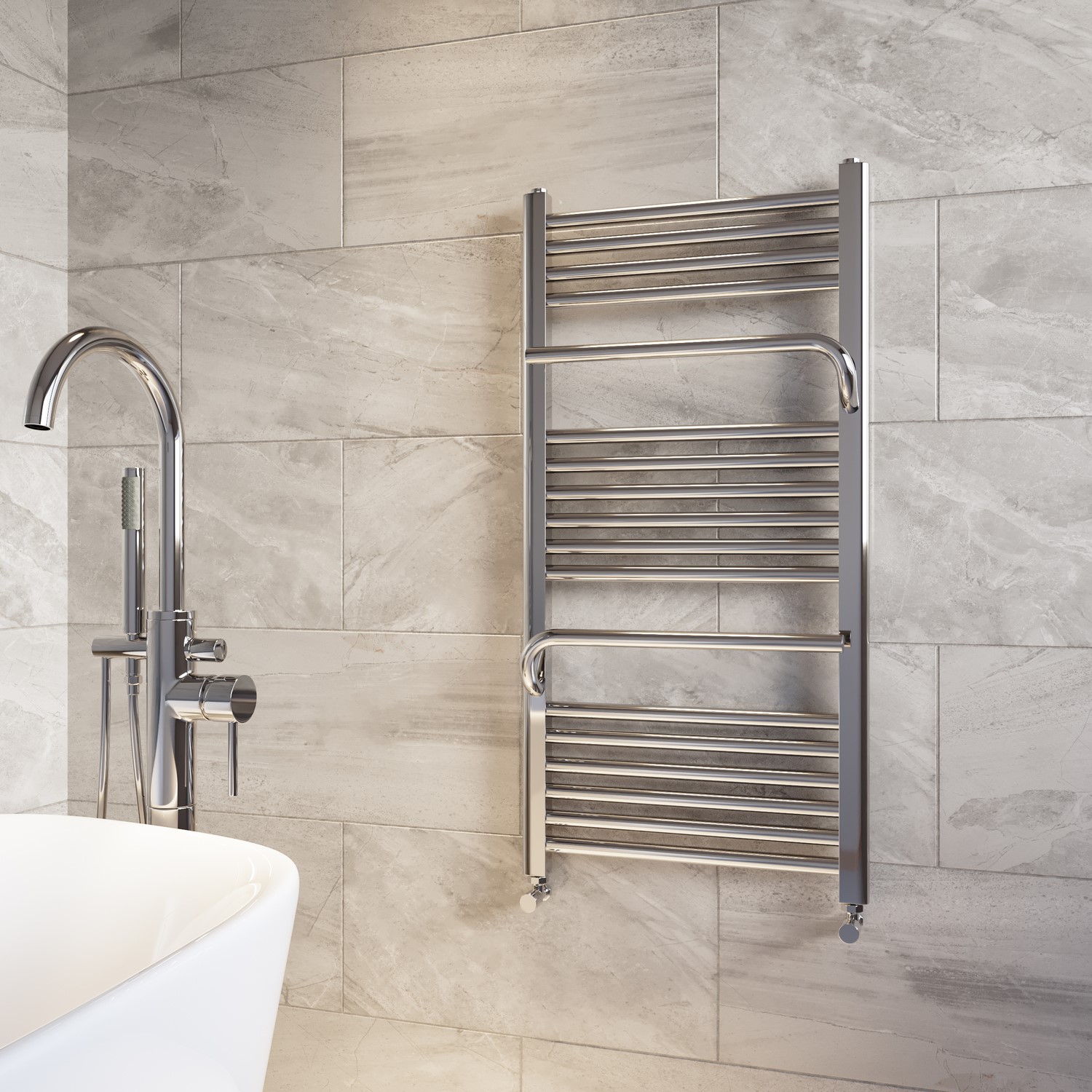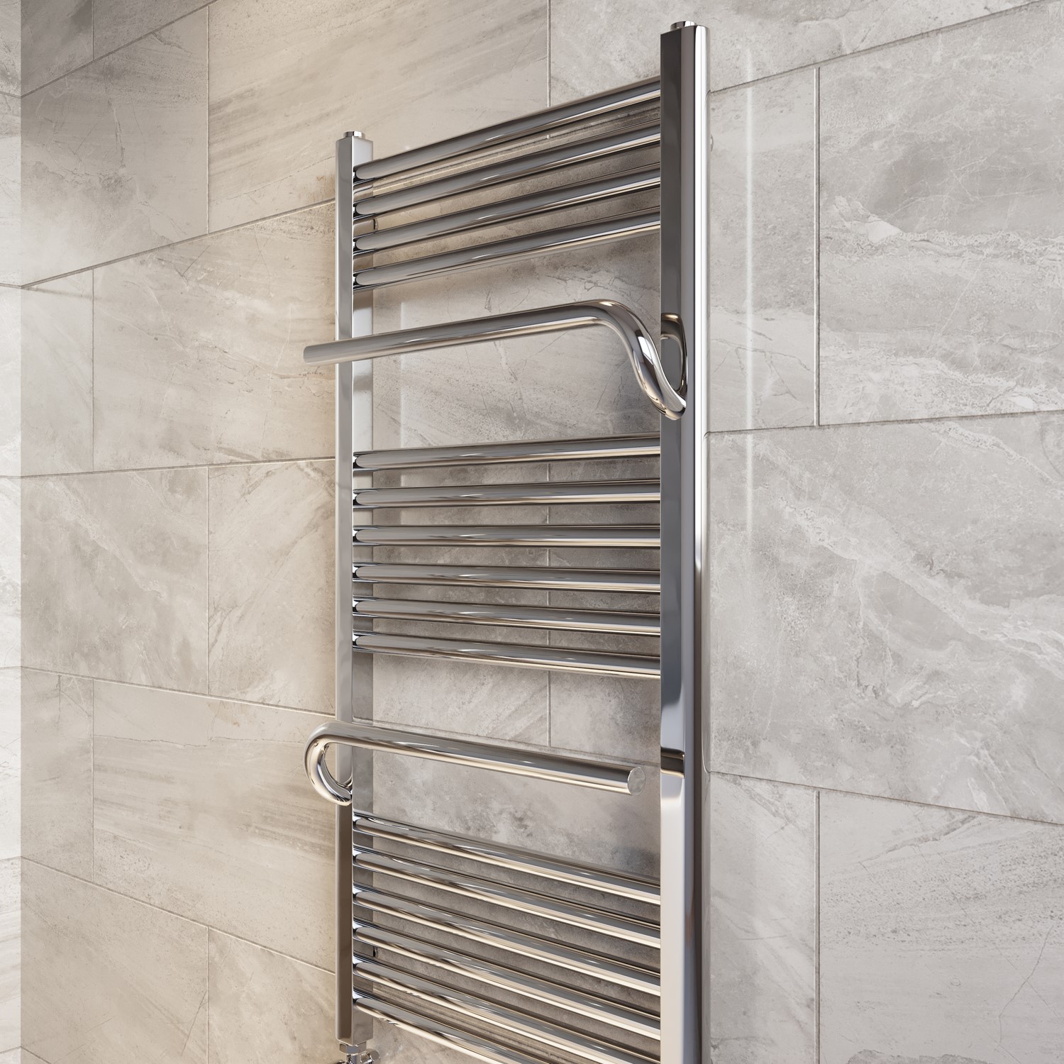 Sleek Chrome Finish: This chrome towel radiator brings a polished, contemporary look to any modern bathroom, adding a touch of elegance to your bathroom.
