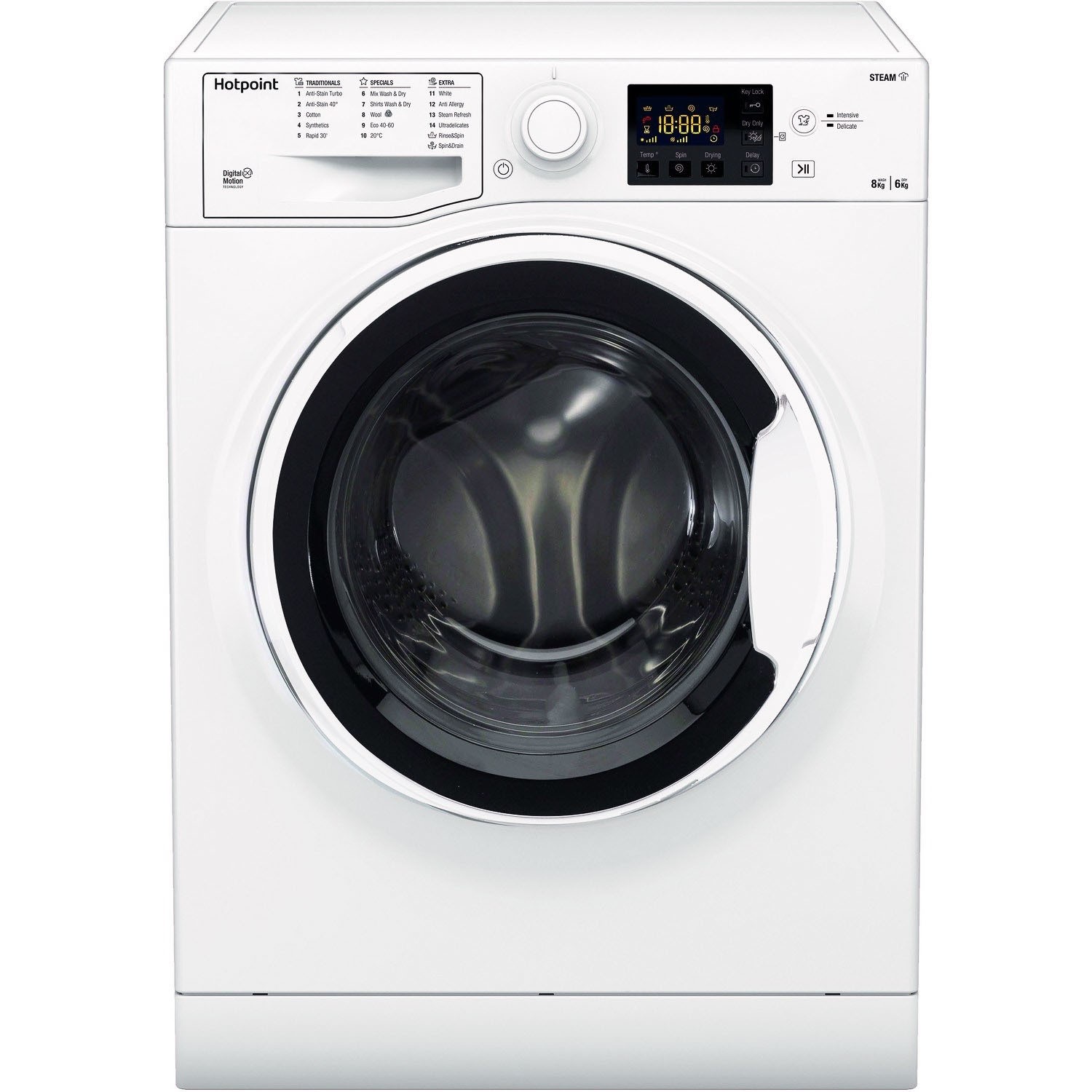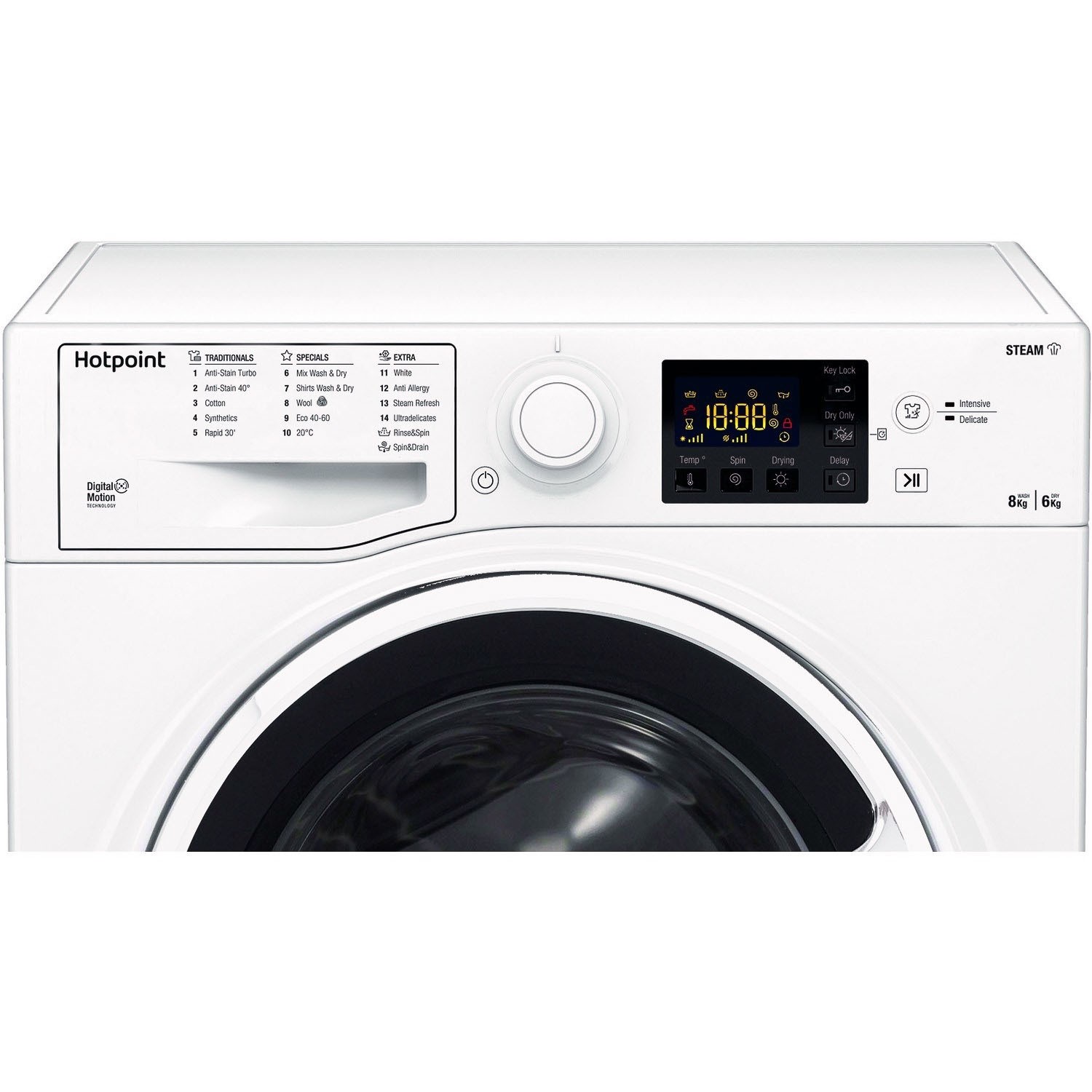 The Hotpoint NDB 8635 W UK freestanding washer-dryer combo with Anti-Stain technology removes stains without the need for any pre-treatment and achieves uniform drying, even on large items. Plus, thanks to the three Wash & Dry cycles, you can complete your laundry without having to interact with the appliance, and the 8+6KG capacity means large loads can be handled with ease.