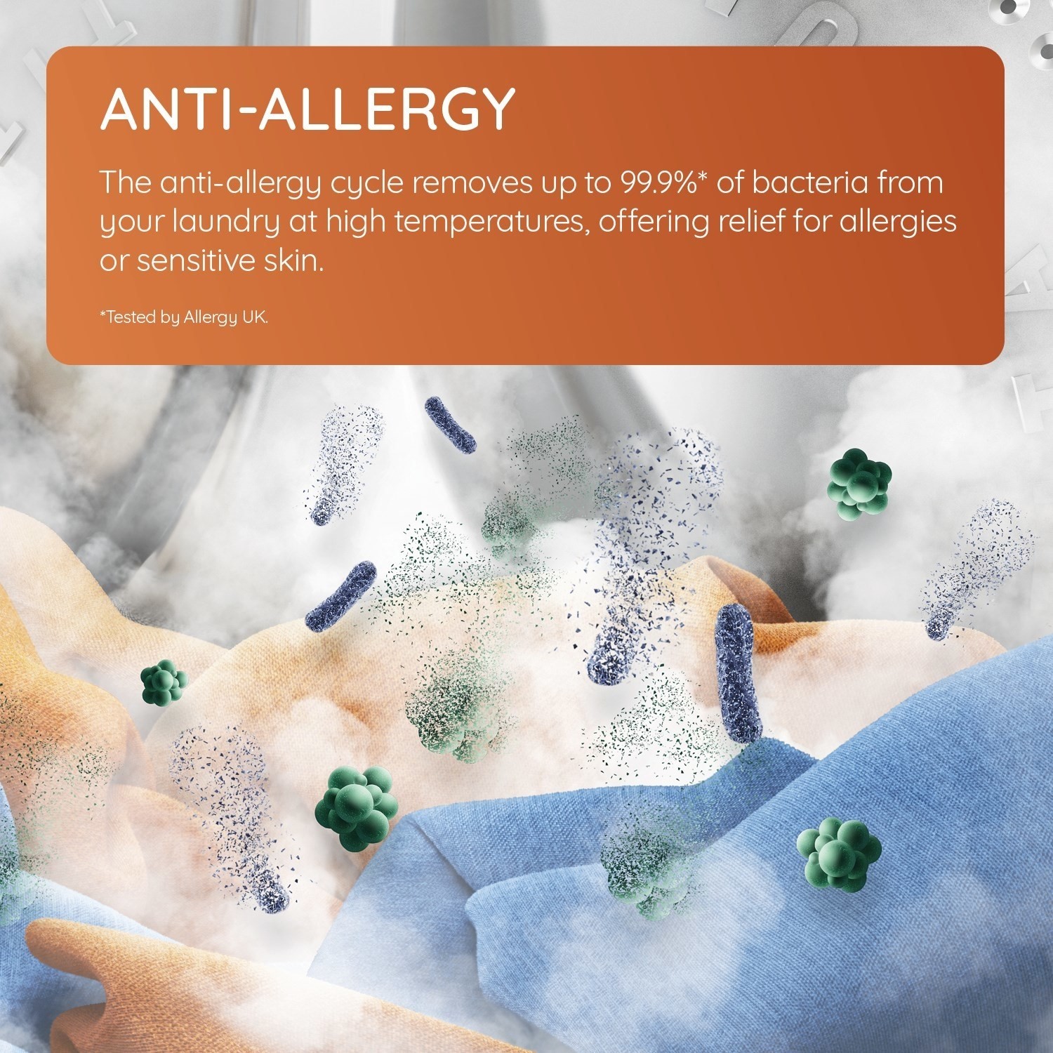 Get extra care for your clothes. The Steam Hygiene feature uses steam at the end of the wash to get rid of up to 99% of germs and viruses. Plus, the Rapid option lets you cut wash times by up to half when you're short on time.