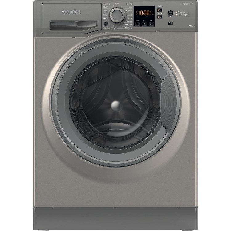 Keep your clothes fresh and your machine clean with the Anti-Allergy and Steam Hygiene options, great for sensitive skin and removing germs. The simple Extra Touch button makes it easy to add steam or speed up your wash. You can even set it to start later with the Start Delay feature, so your washing finishes when it suits you. It also has a gentle Wool Care program to look after your jumpers. With a reliable motor and a modern graphite finish, this Hotpoint washing machine makes laundry simpler and more efficient.