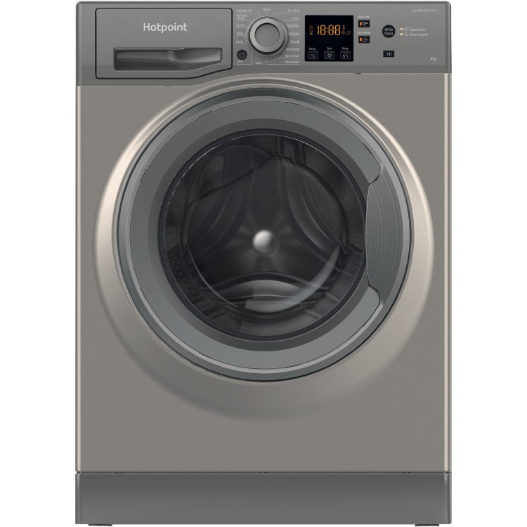 Keep your clothes as fresh as the day you bought them with the 9kg 1400 spin Hotpoint NSWR 944C GK UK N Washing Machine, designed to protect your clothes against stubborn stains alongside cycles that are high performing. The Steam Hygiene cycle provides the ultimate care and protection for a totally hygienic wash. Steam hygiene injects steam directly into the drum at the end of the cycle, removing up to 99.9% of the most common bacteria without the use of chemical additives. With the Anti Stain cycle you can ensure that this machine is able to tackle the most common household stains without the need to pre-treat your clothes, the tailored drum motions and water monitoring technology is the science behind Hotpoint's stain removal.