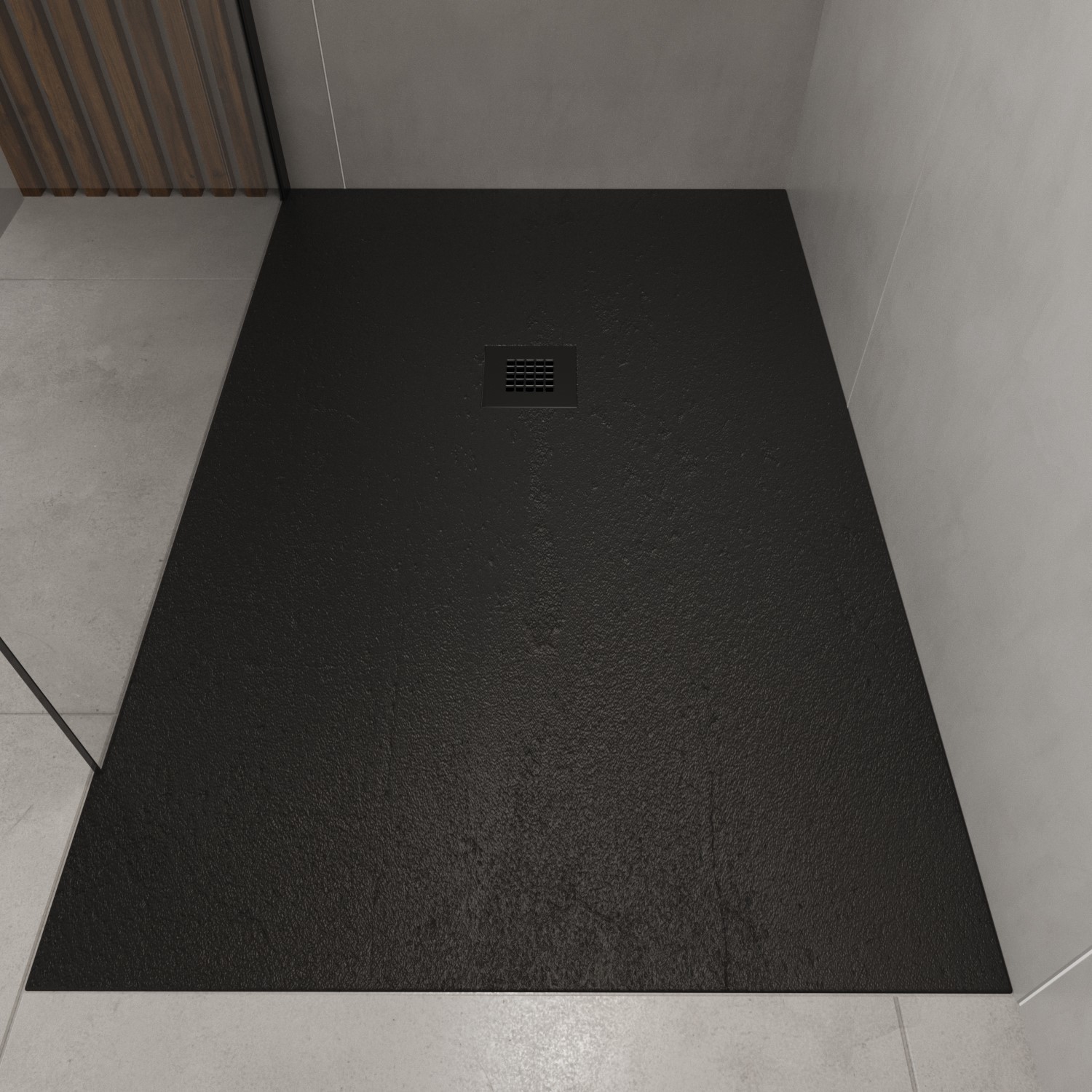 1400x900mm Rectangular Black Slate-Effect Shower Tray 27mm - Stone Resin - Sileti